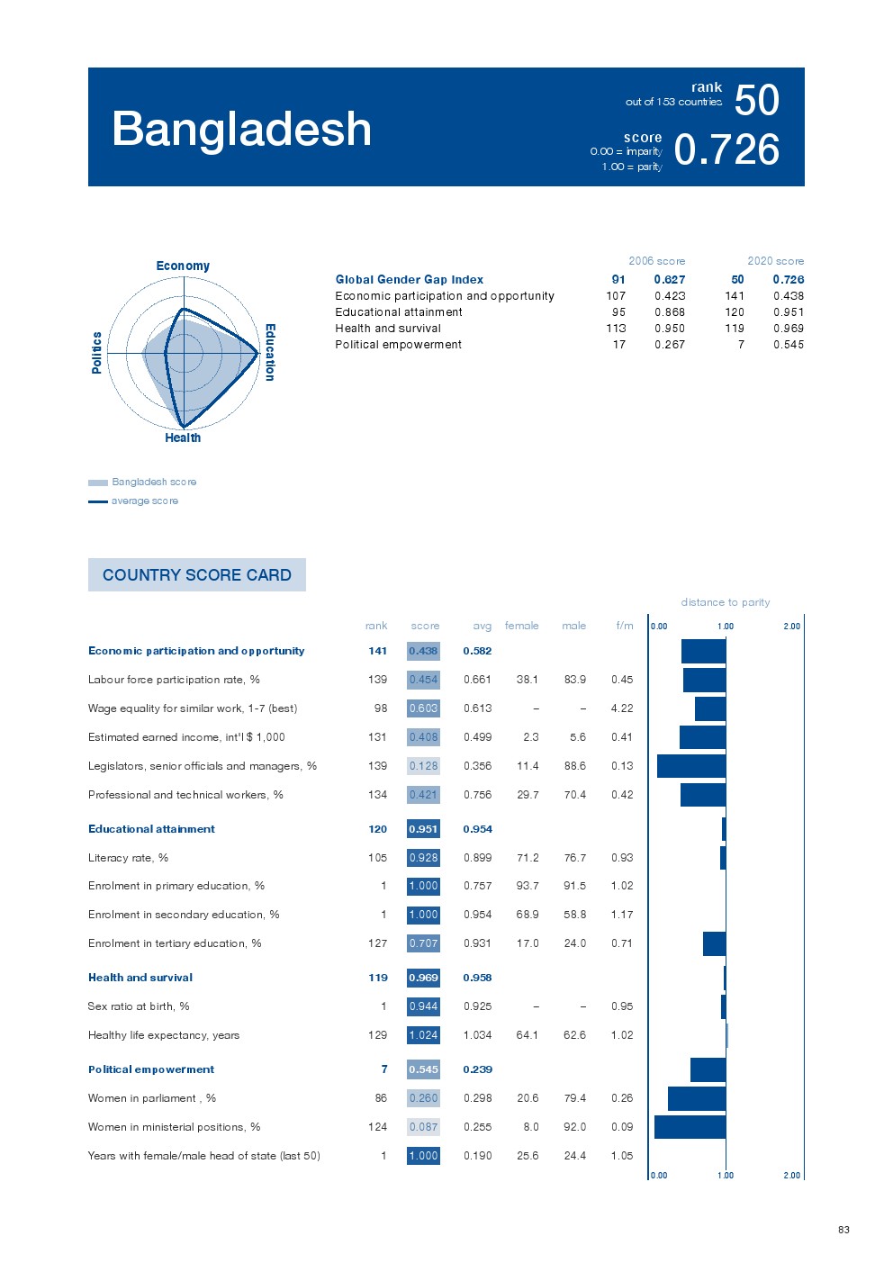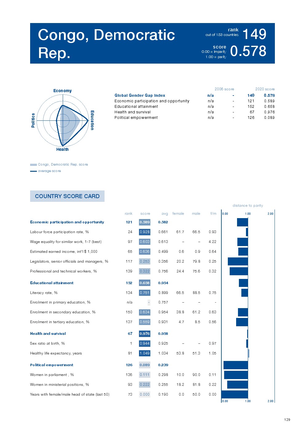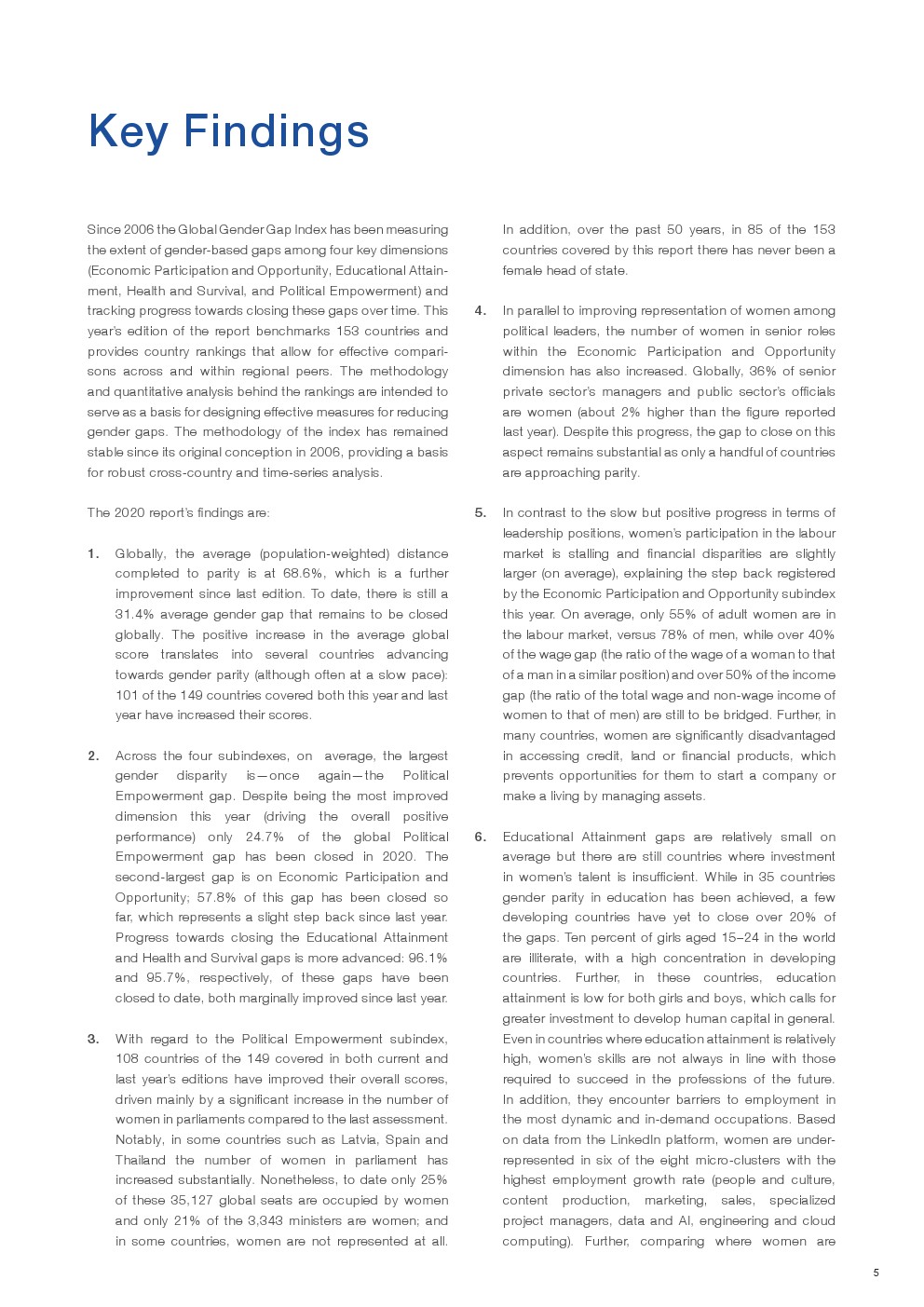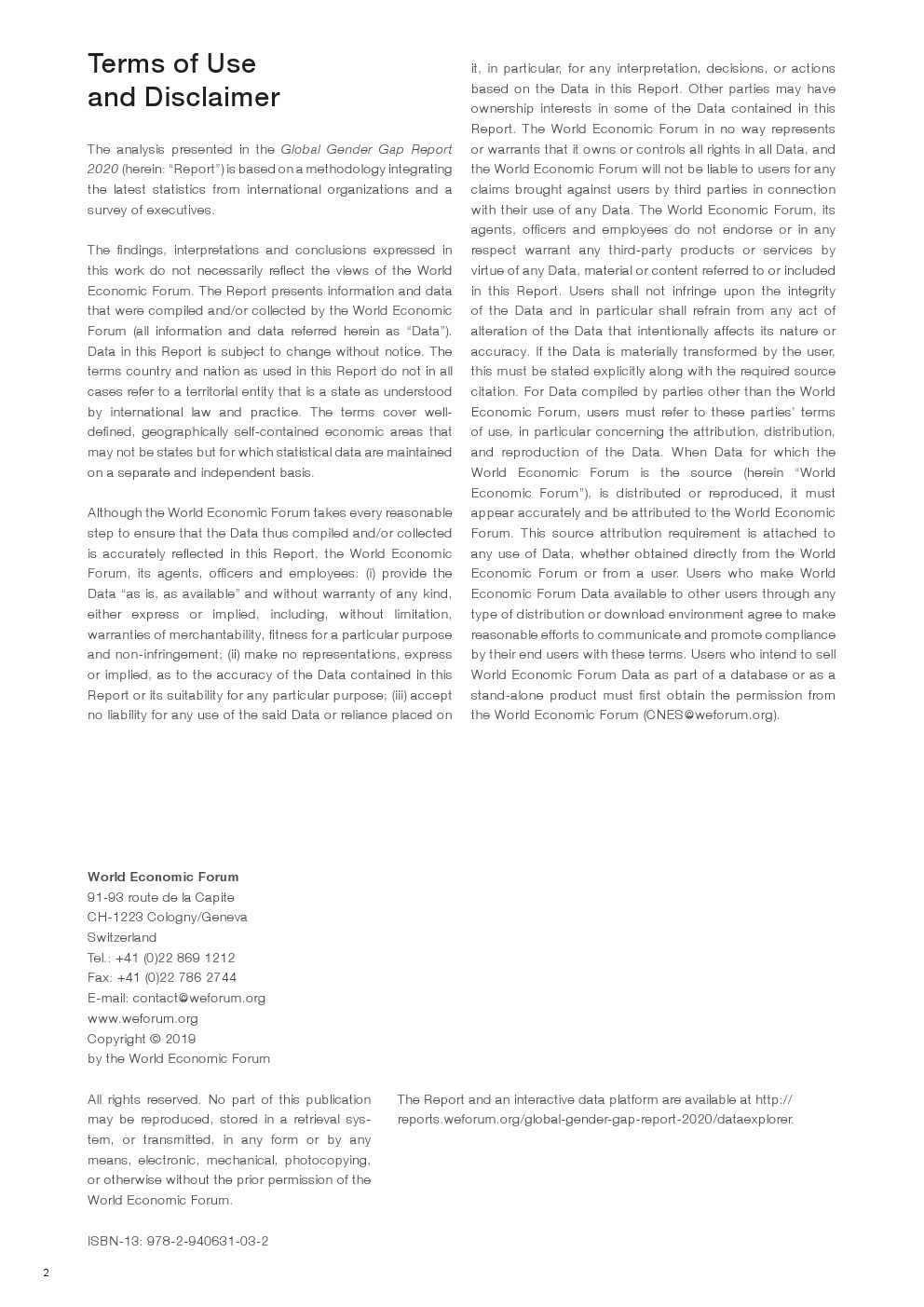 世界经济论坛发布了“2020年全球性别差距报告”。