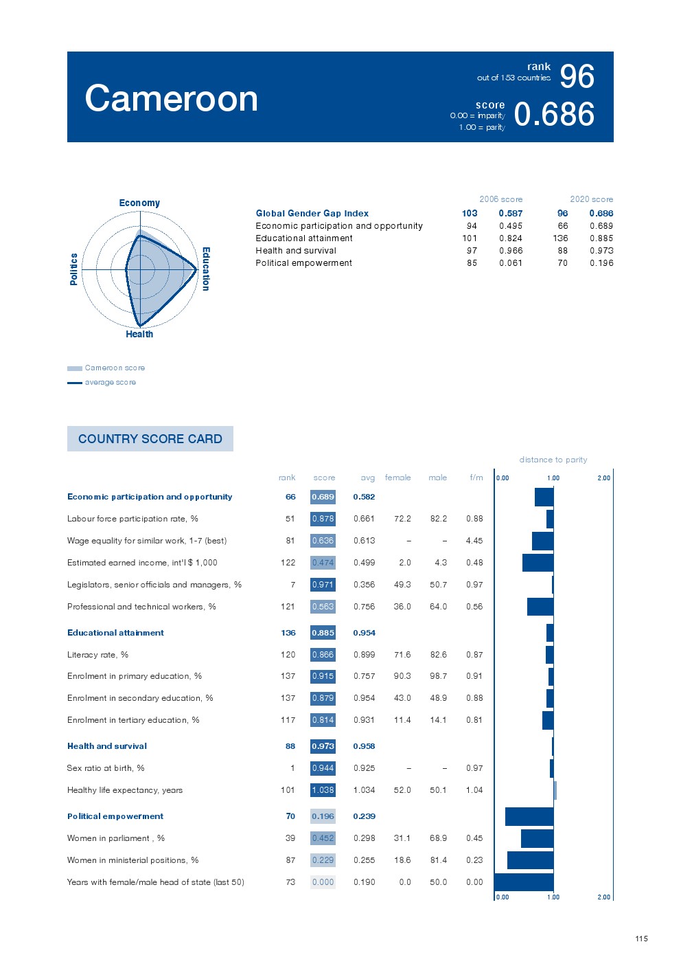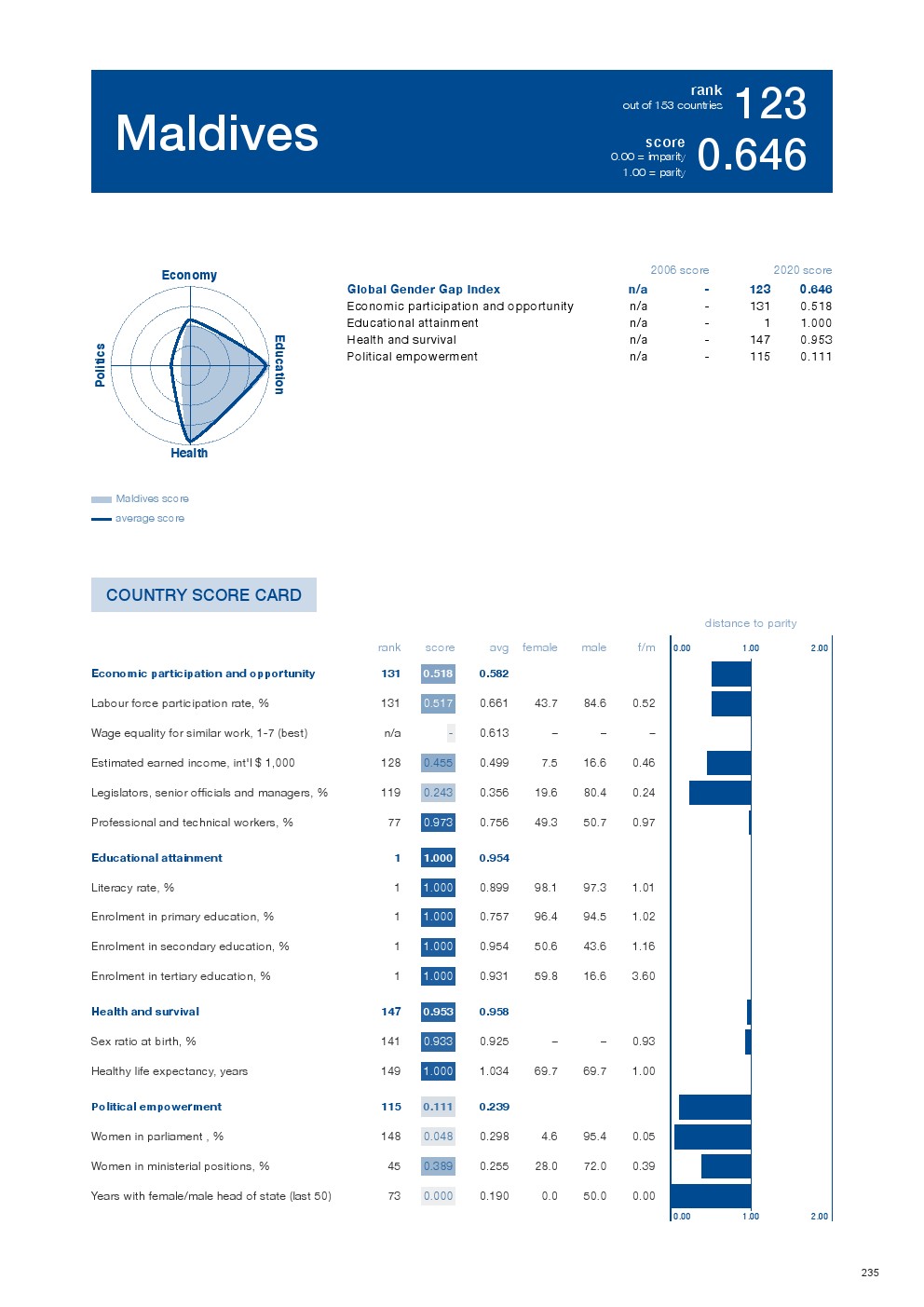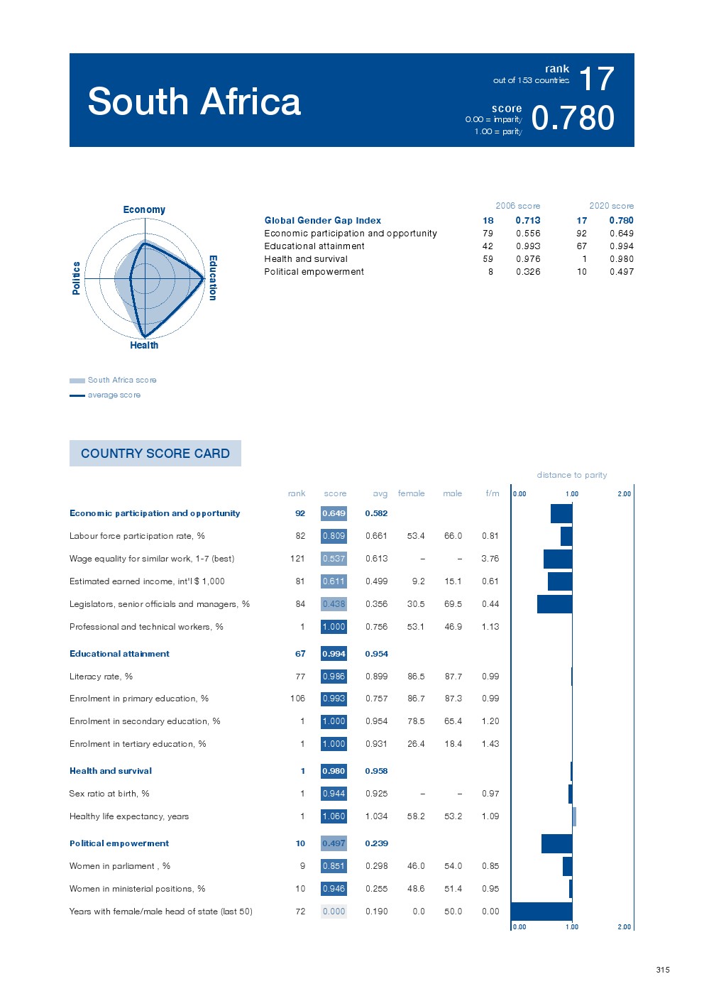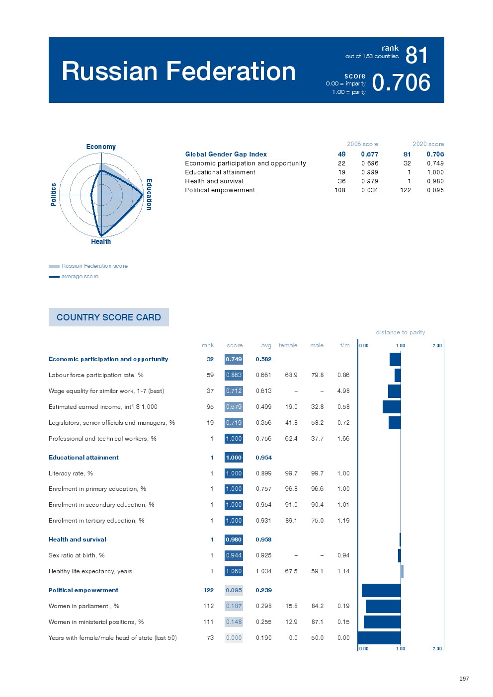 世界经济论坛发布了“2020年全球性别差距报告”。
