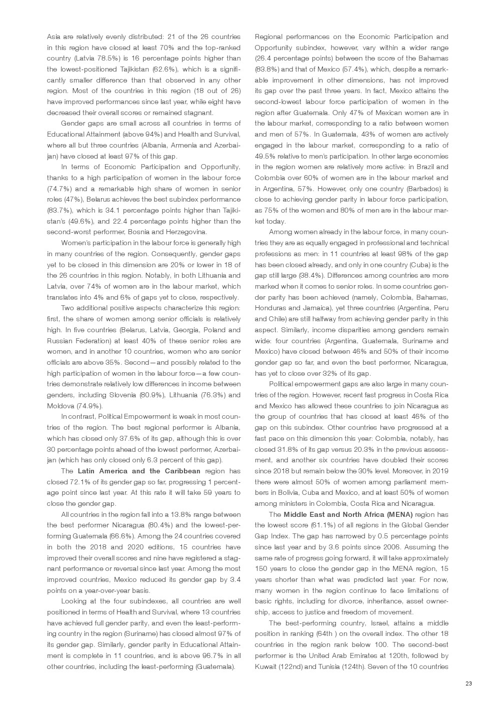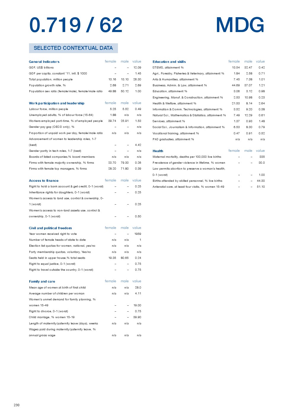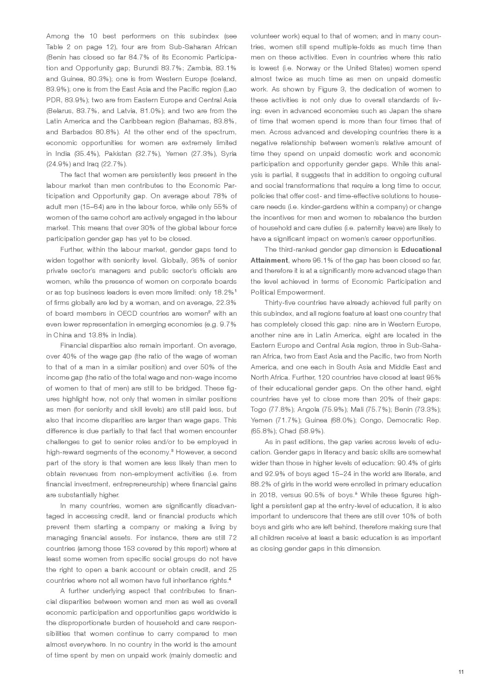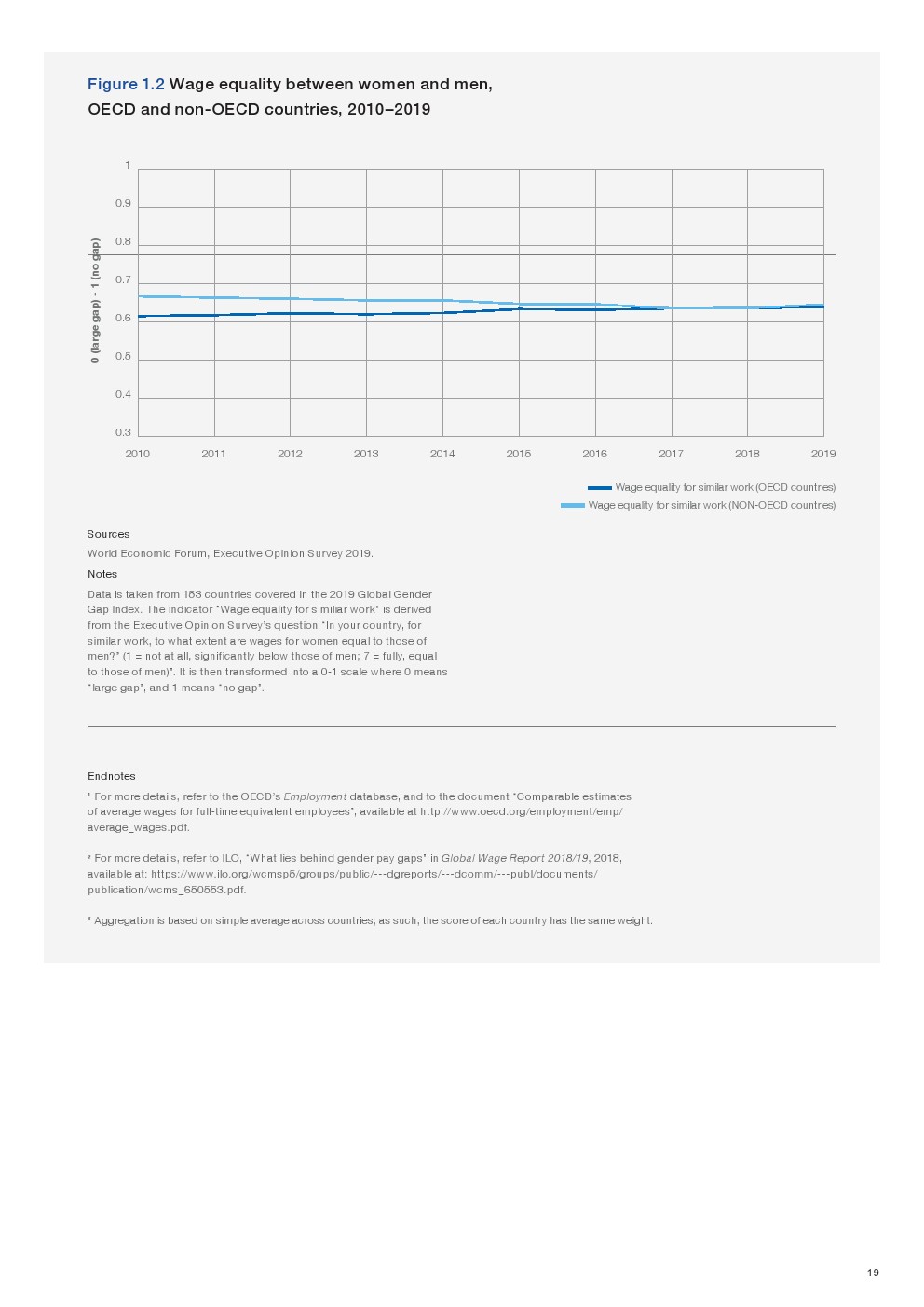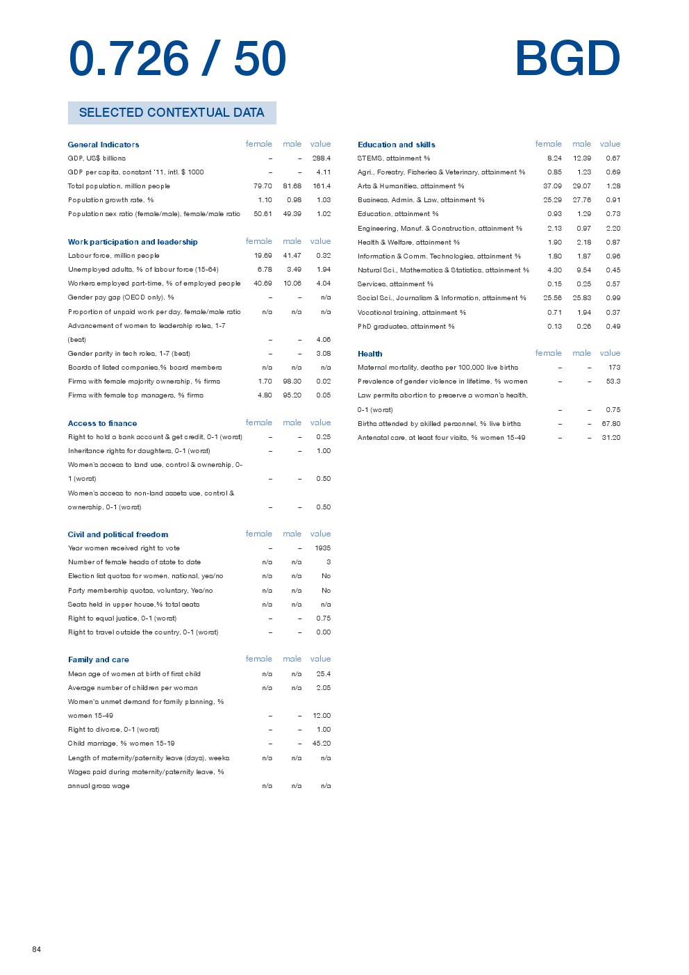 女性参与劳动市场保持稳定,但收入差距有所扩大。55%的成年女性进入劳动力市场;相比之下,78%的成年男性进入劳动力市场。超过40%的工资差距和超过50%的收入差距仍有待弥合。