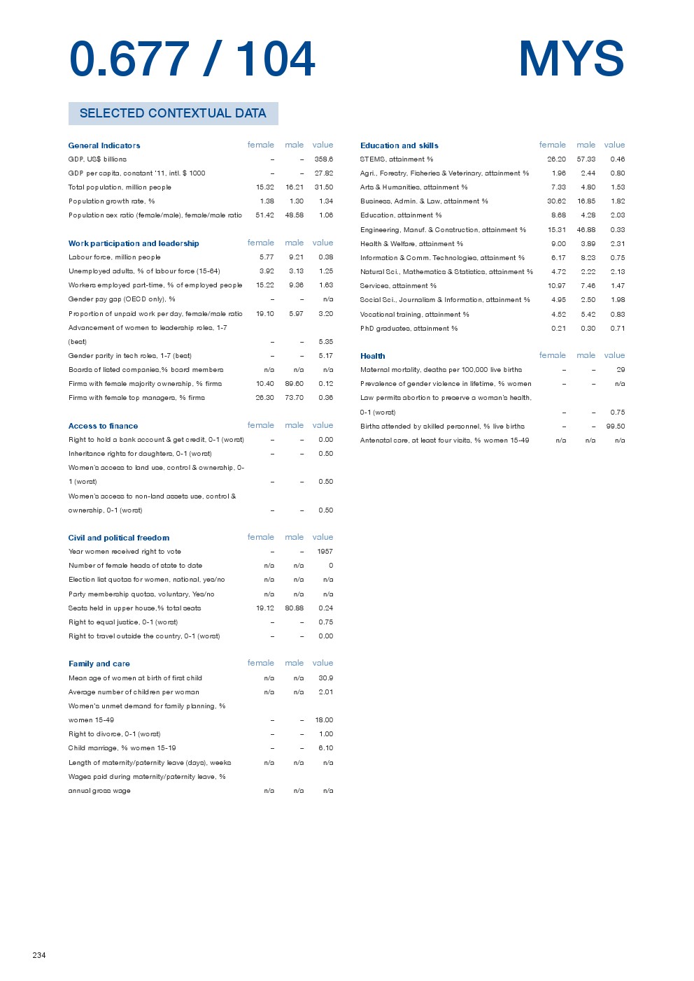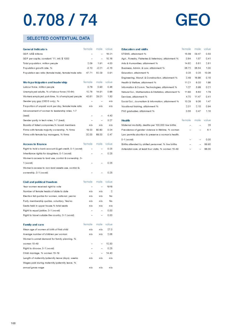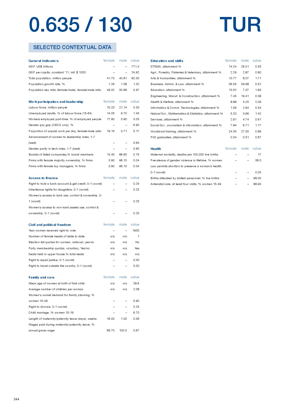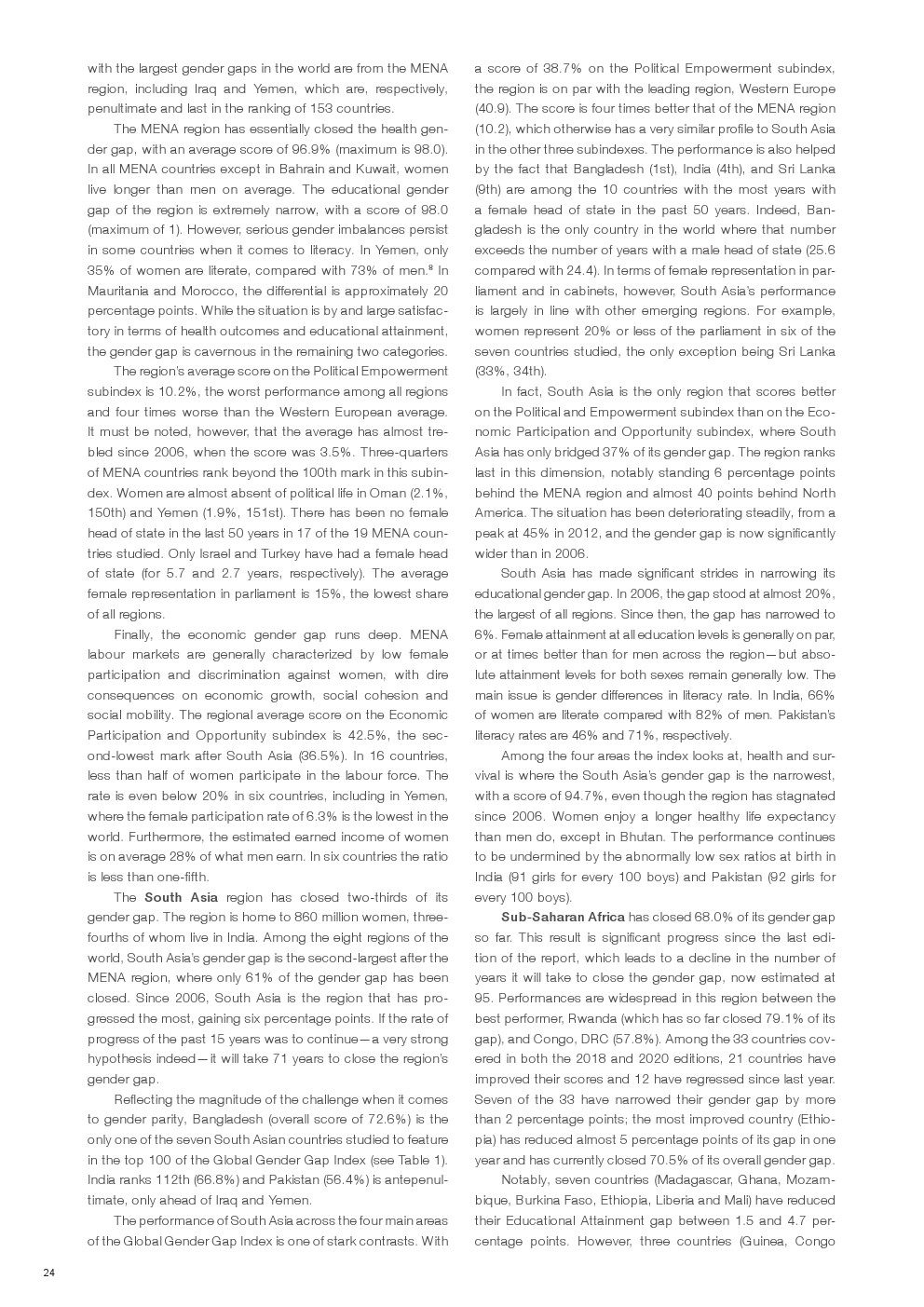 女性参与劳动市场保持稳定,但收入差距有所扩大。55%的成年女性进入劳动力市场;相比之下,78%的成年男性进入劳动力市场。超过40%的工资差距和超过50%的收入差距仍有待弥合。
