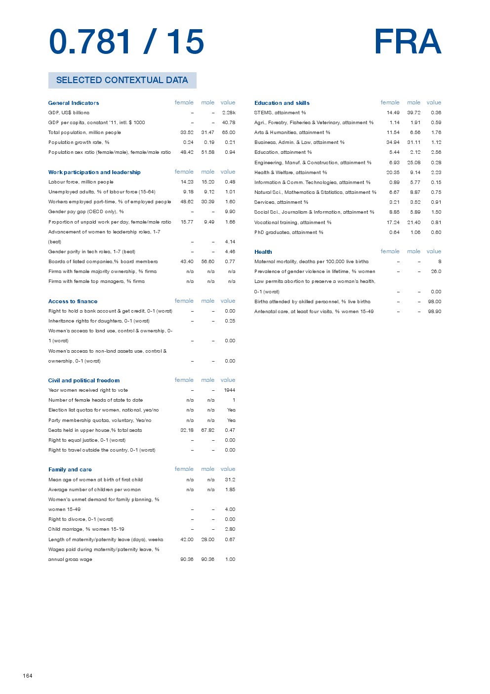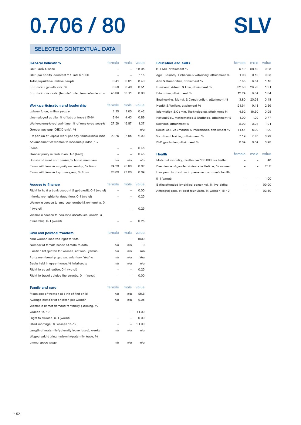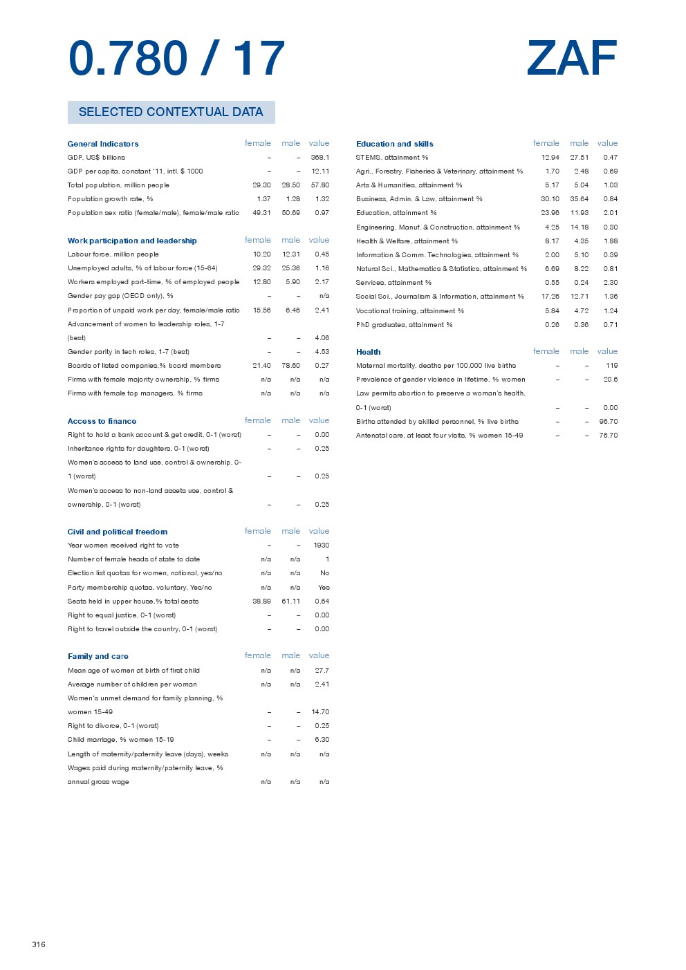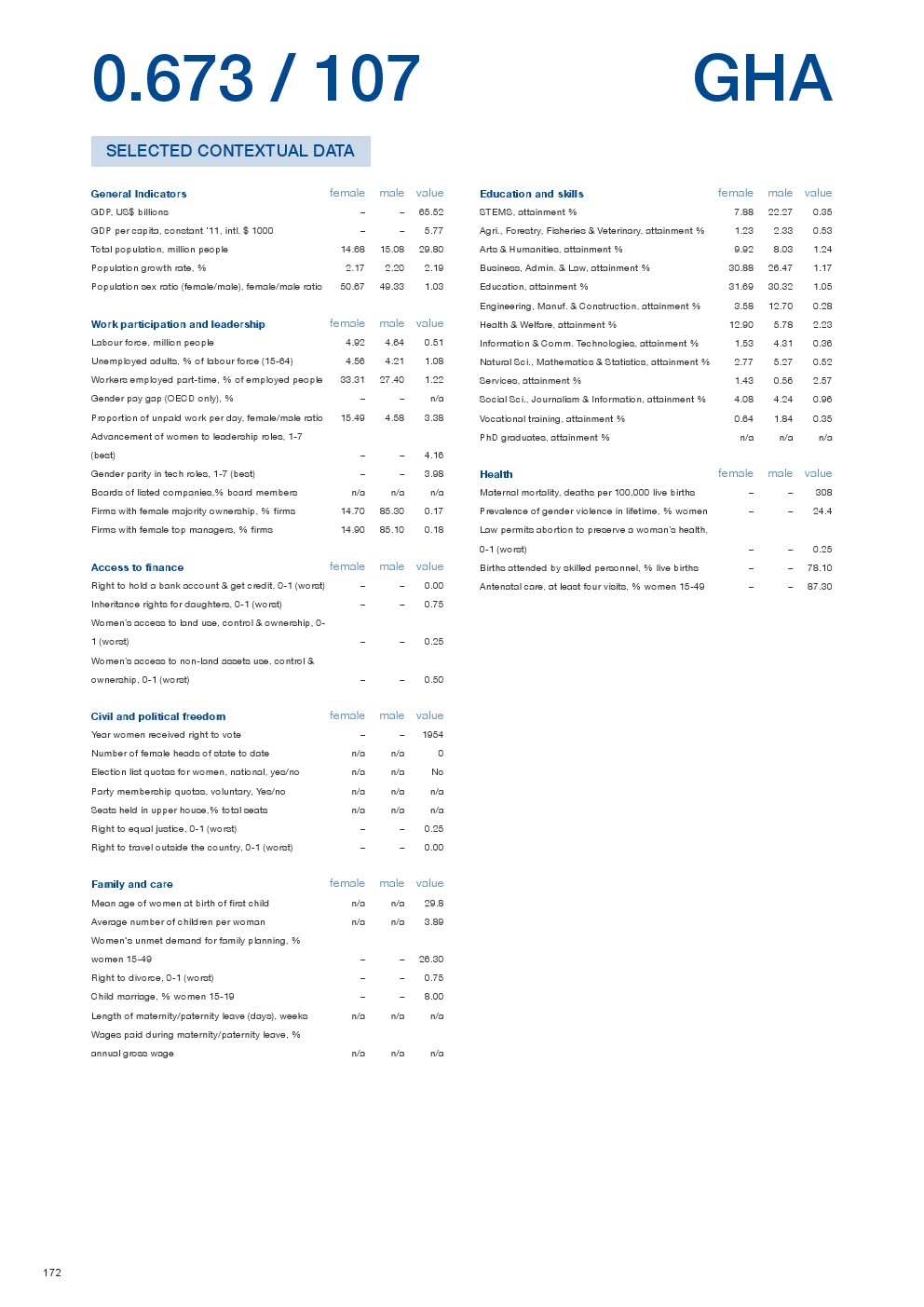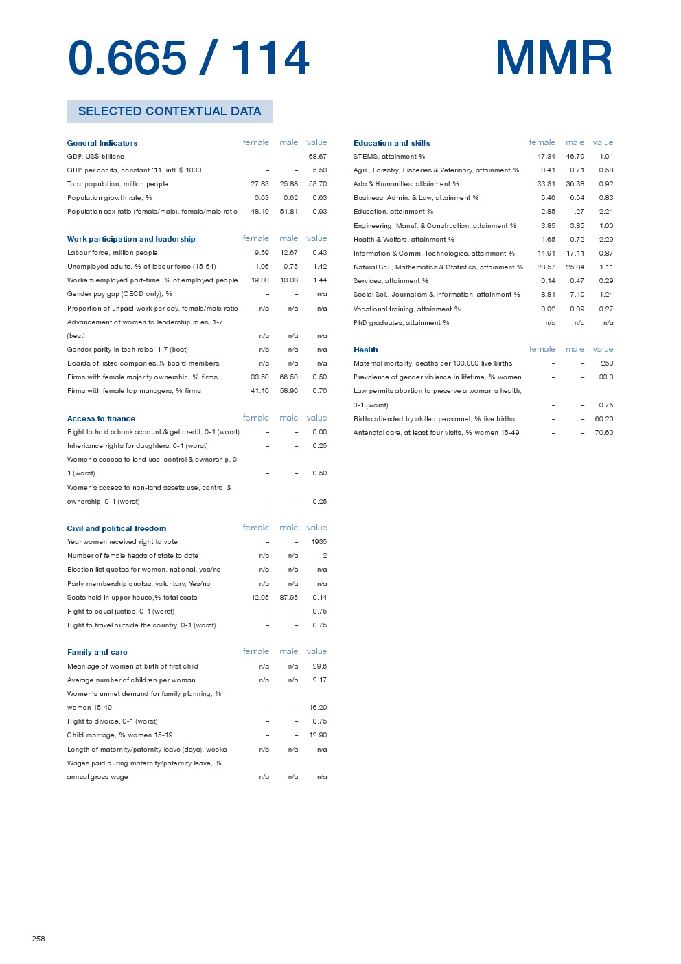 女性参与劳动市场保持稳定,但收入差距有所扩大。55%的成年女性进入劳动力市场;相比之下,78%的成年男性进入劳动力市场。超过40%的工资差距和超过50%的收入差距仍有待弥合。