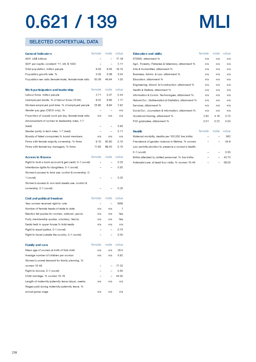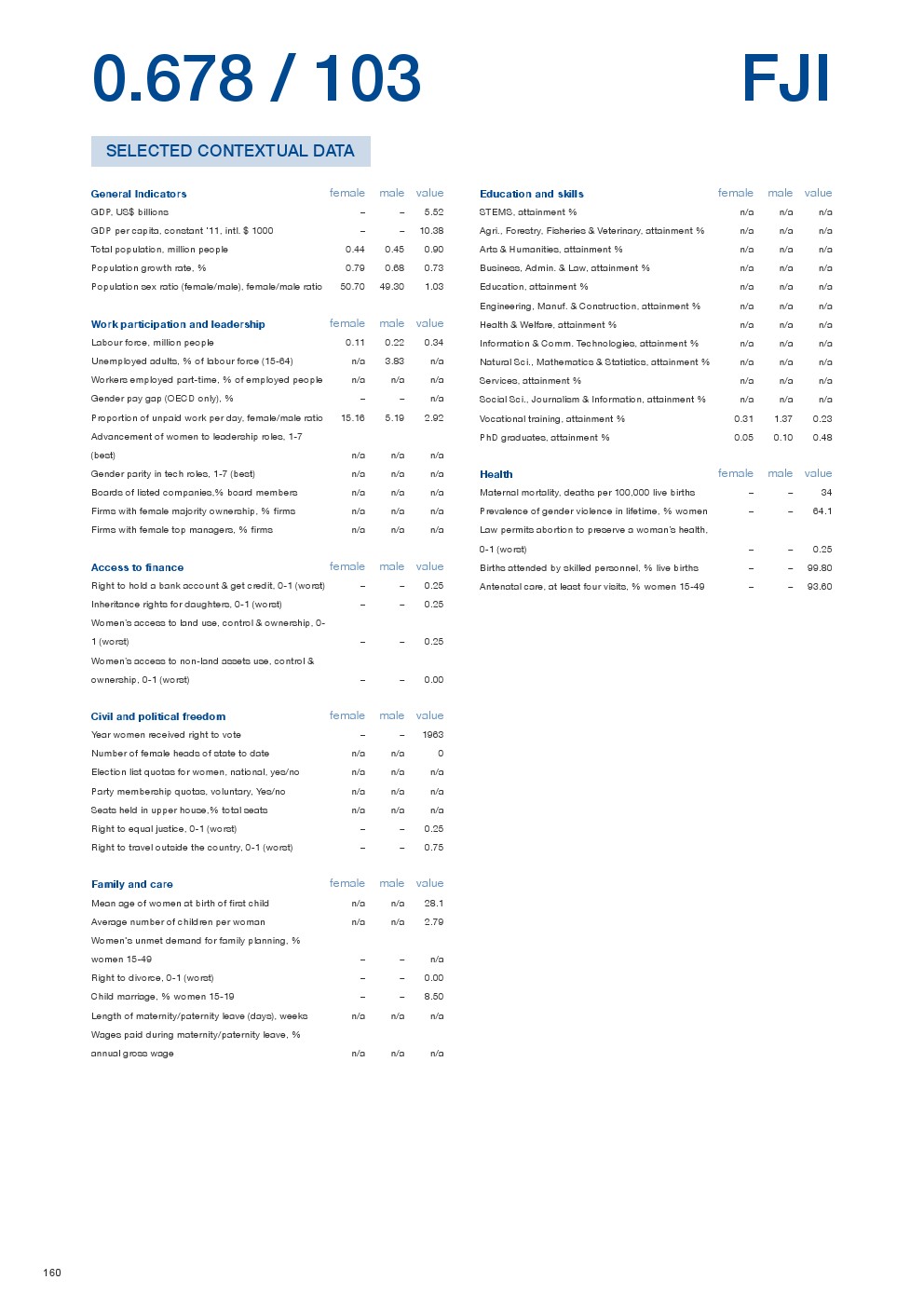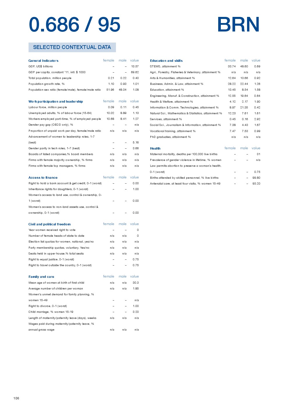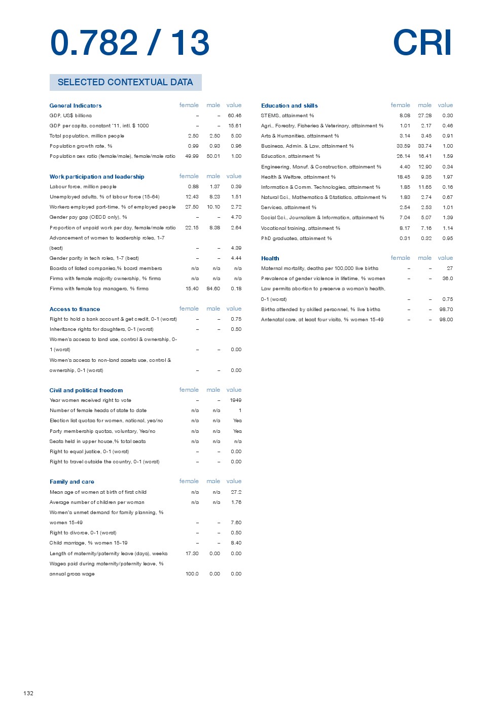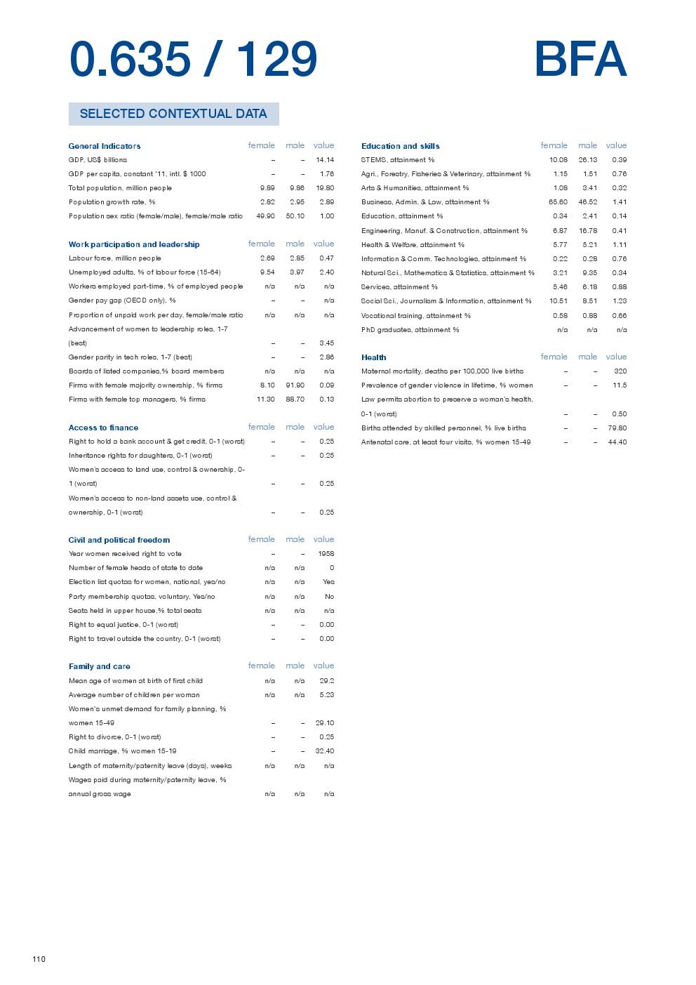 女性参与劳动市场保持稳定,但收入差距有所扩大。55%的成年女性进入劳动力市场;相比之下,78%的成年男性进入劳动力市场。超过40%的工资差距和超过50%的收入差距仍有待弥合。
