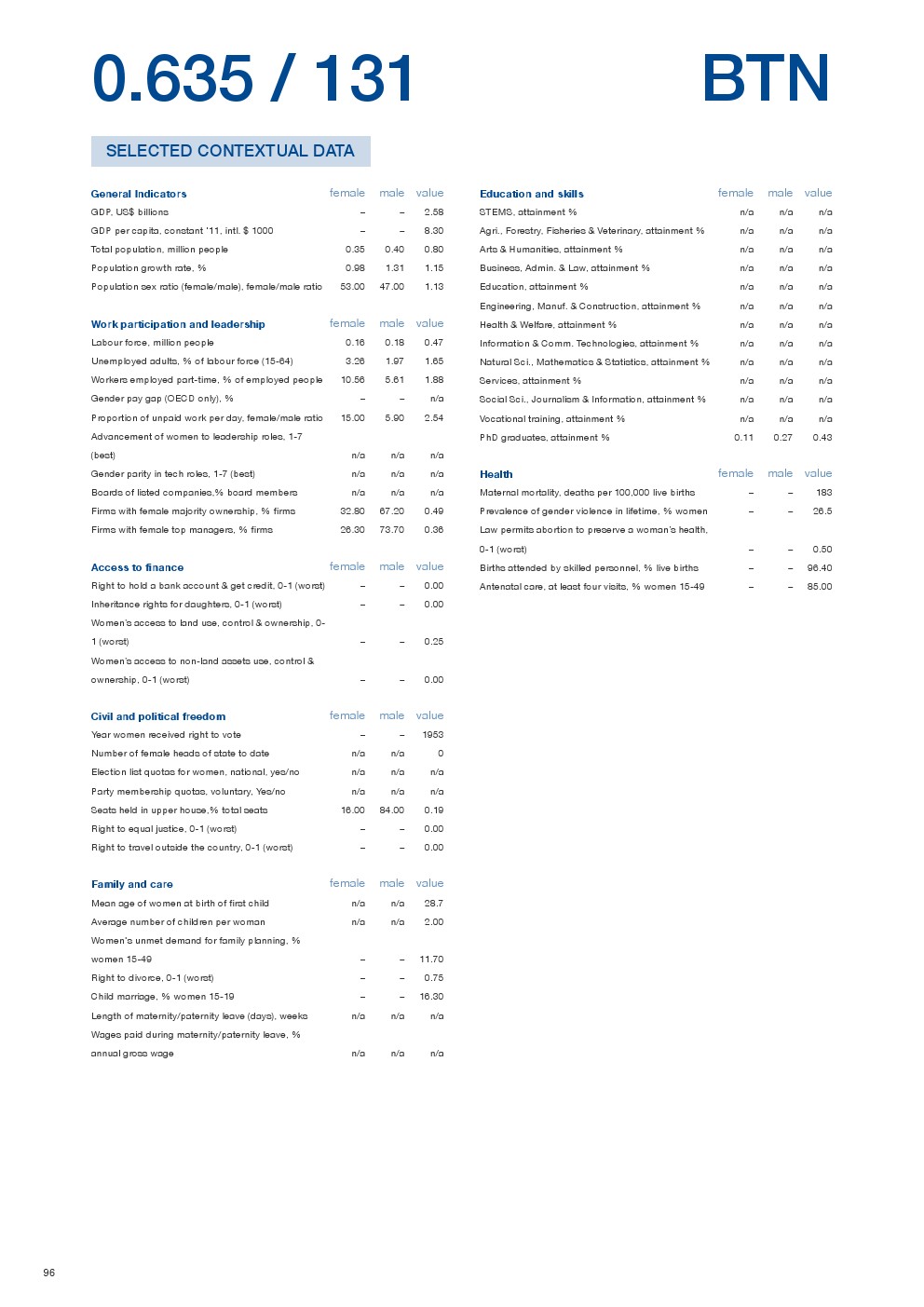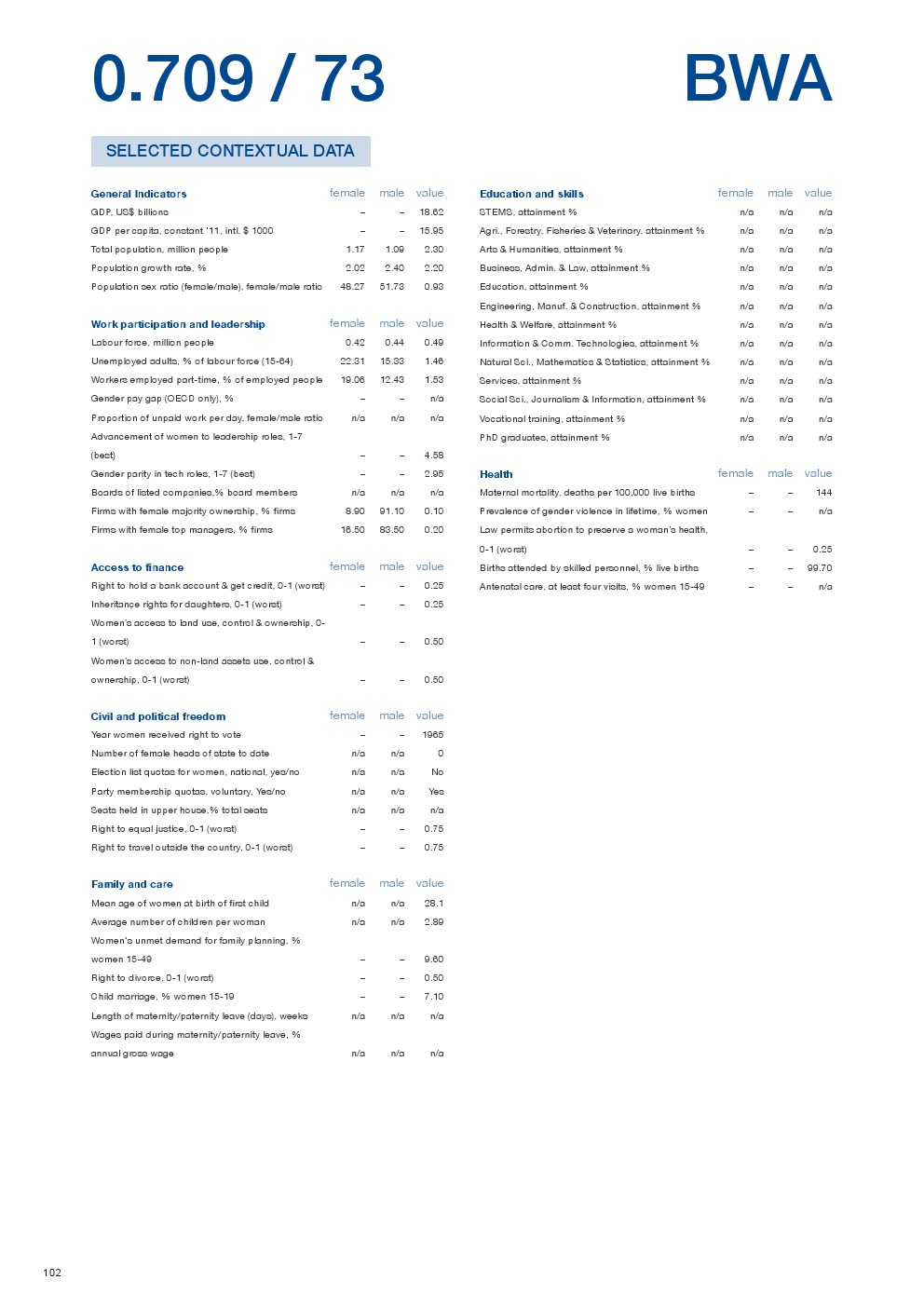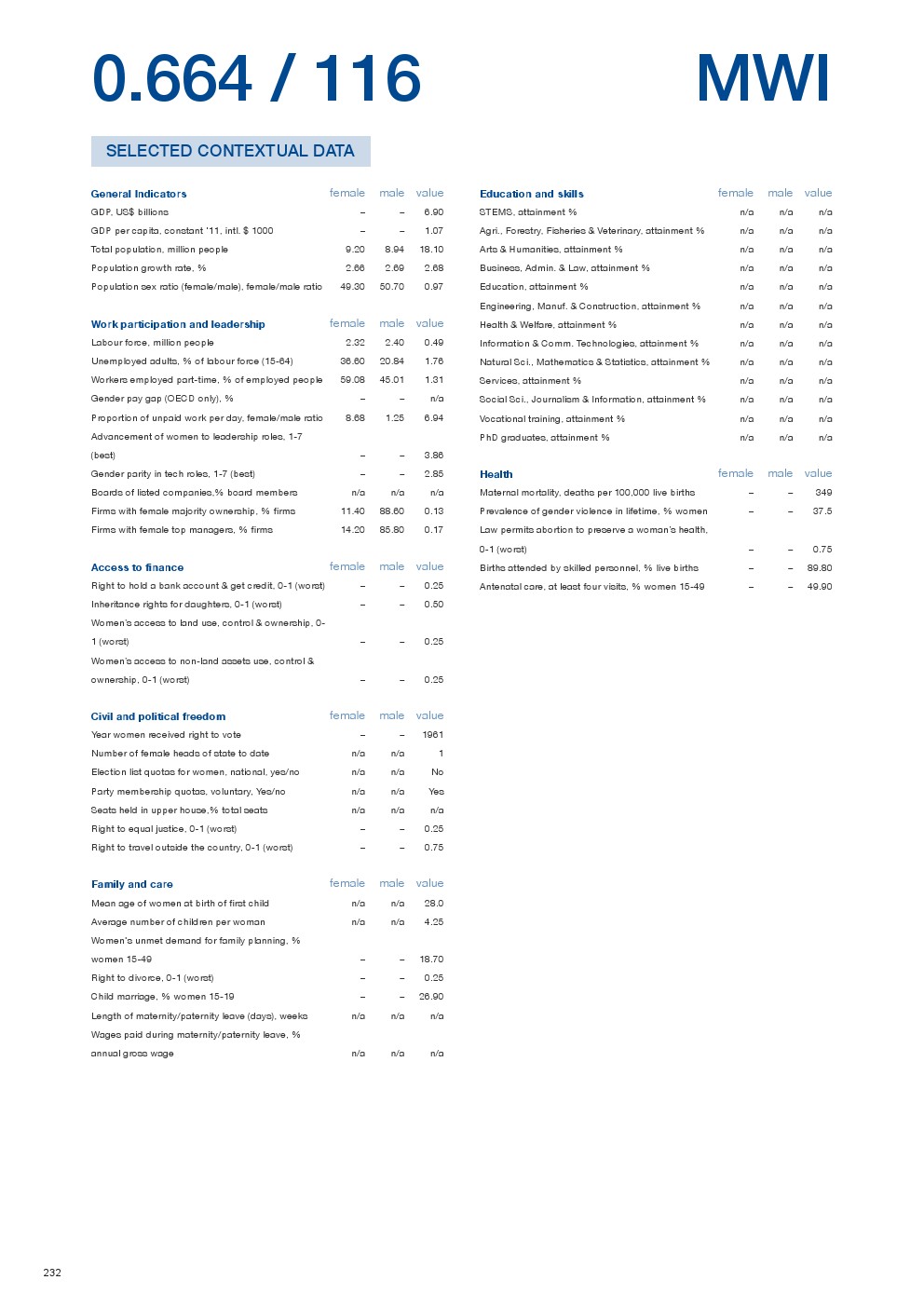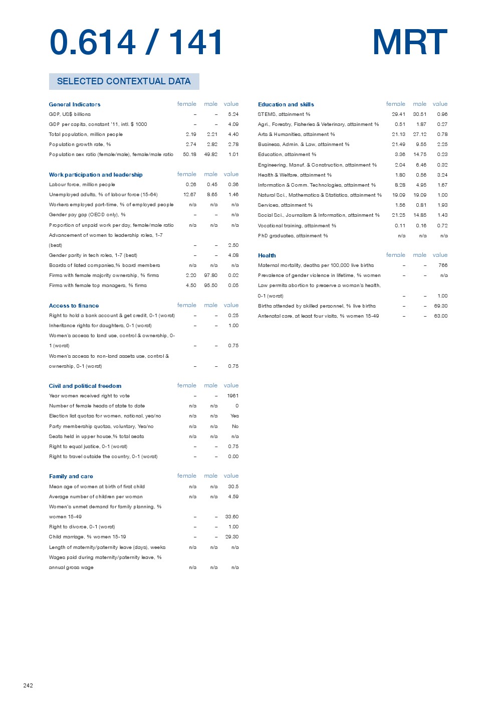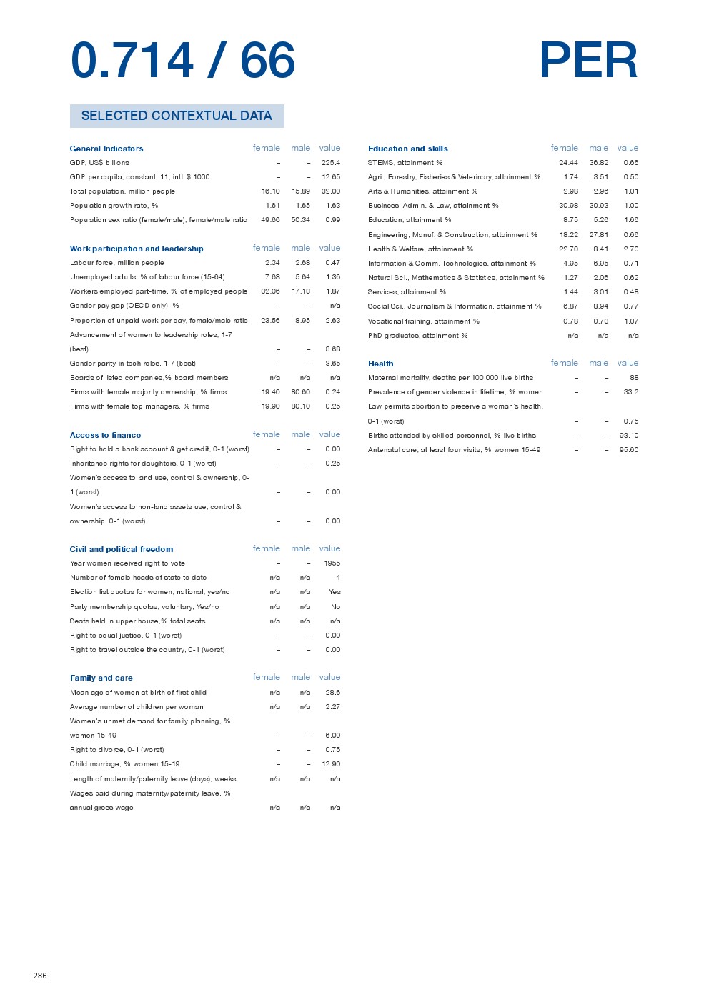 女性参与劳动市场保持稳定,但收入差距有所扩大。55%的成年女性进入劳动力市场;相比之下,78%的成年男性进入劳动力市场。超过40%的工资差距和超过50%的收入差距仍有待弥合。