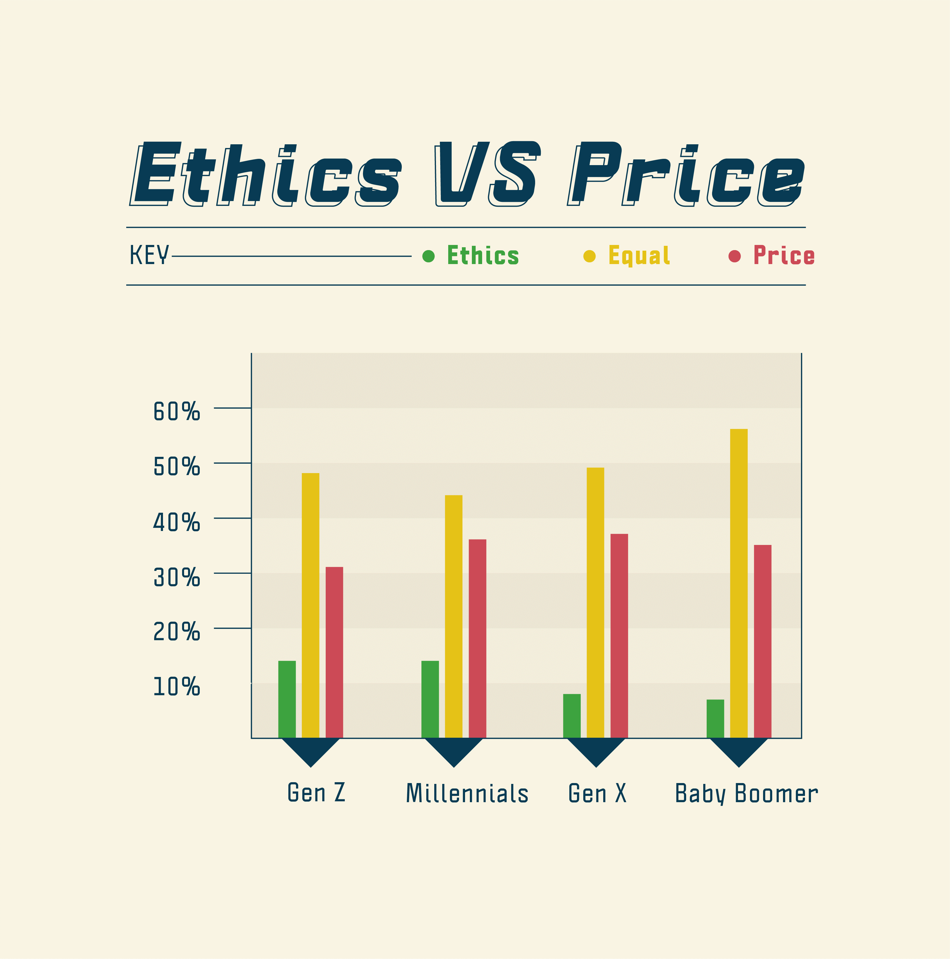 10%的受访者认为道德和价值观很重要,而且这一趋势似乎还在增长。14%的Z世代(18-23岁)和千禧一代(24-37岁)认为道德和价值观比价格更重要,是婴儿潮一代(53-71岁)(7%)的两倍。