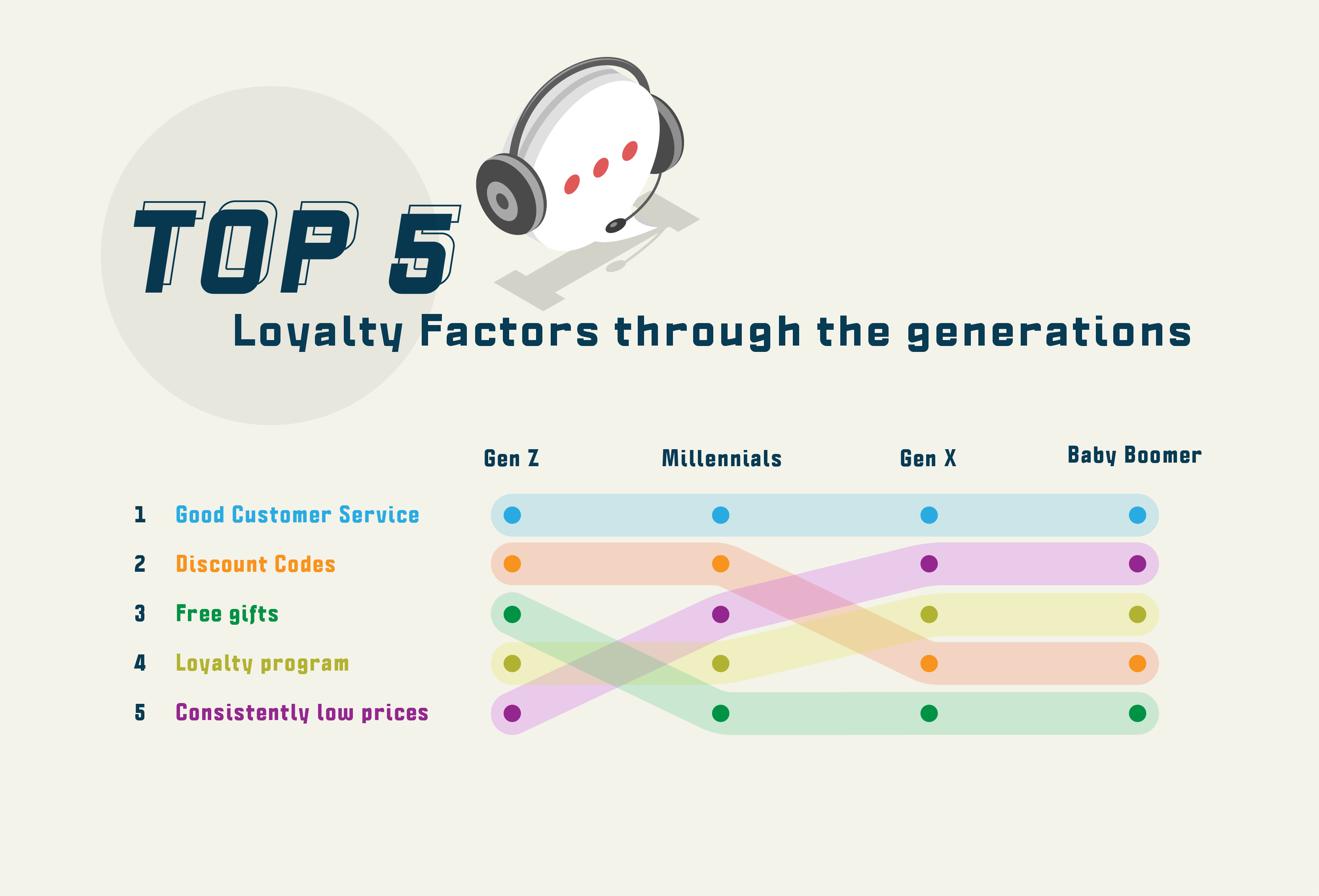 获得忠诚的最重要的五个因素包括: