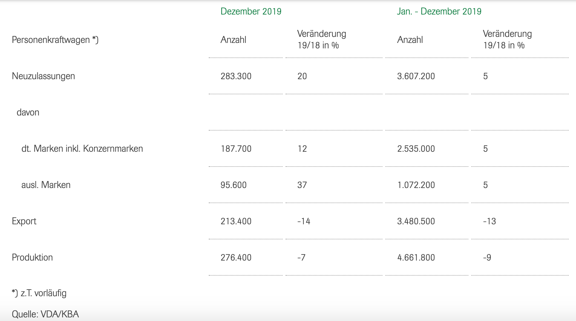 德国汽车工业协会(VDA)周一发布的数据显示,受全球贸易冲突影响,2019年德国汽车产量创下23年新低。