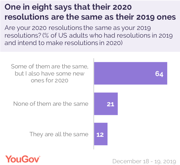 只有7%的美国成年人坚持了2019年的所有计划。与此同时,19%的受访者能够坚持自己的一些计划。