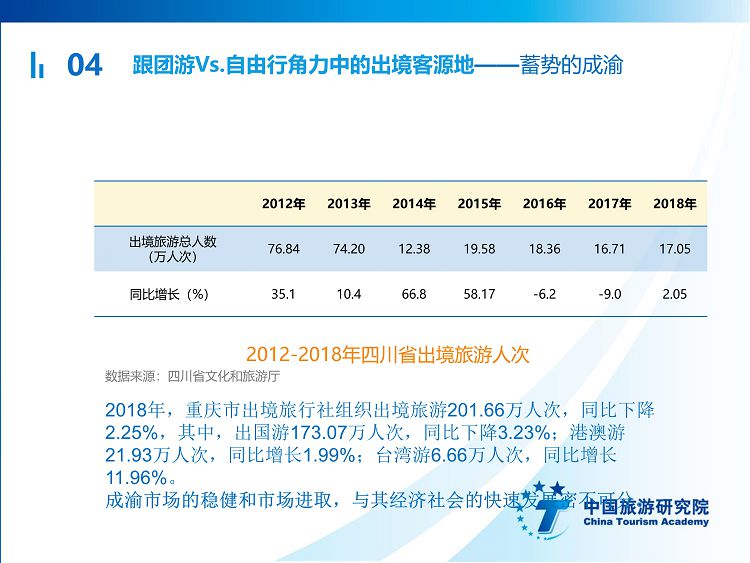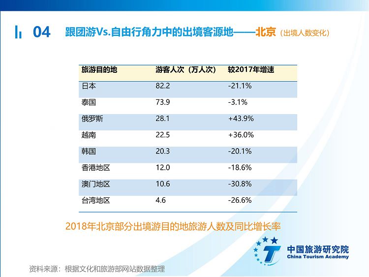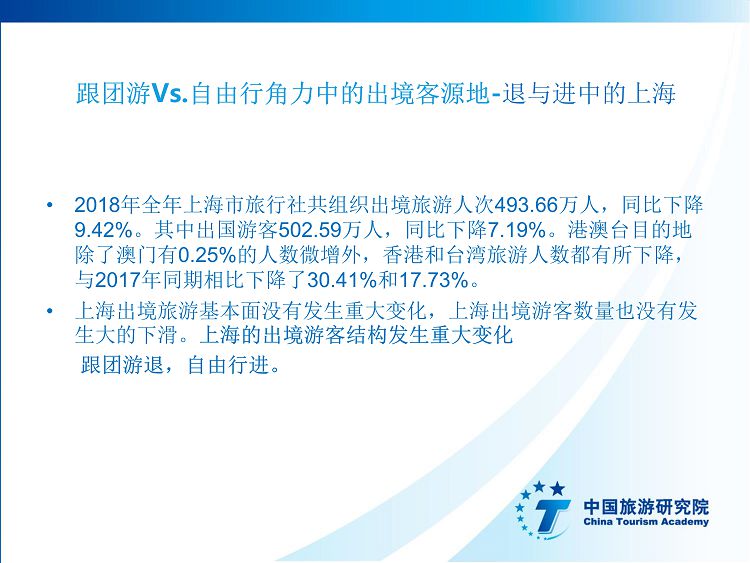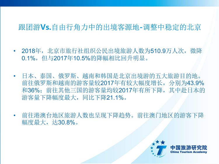 从客源地数据分析,北京旅行社组织的出境游处于调整与稳定阶段,并表现出明显的远程化和多元化。上海出境游客结构发生重大变化,跟团游退,自由行进。成渝地区在蓄势待发。