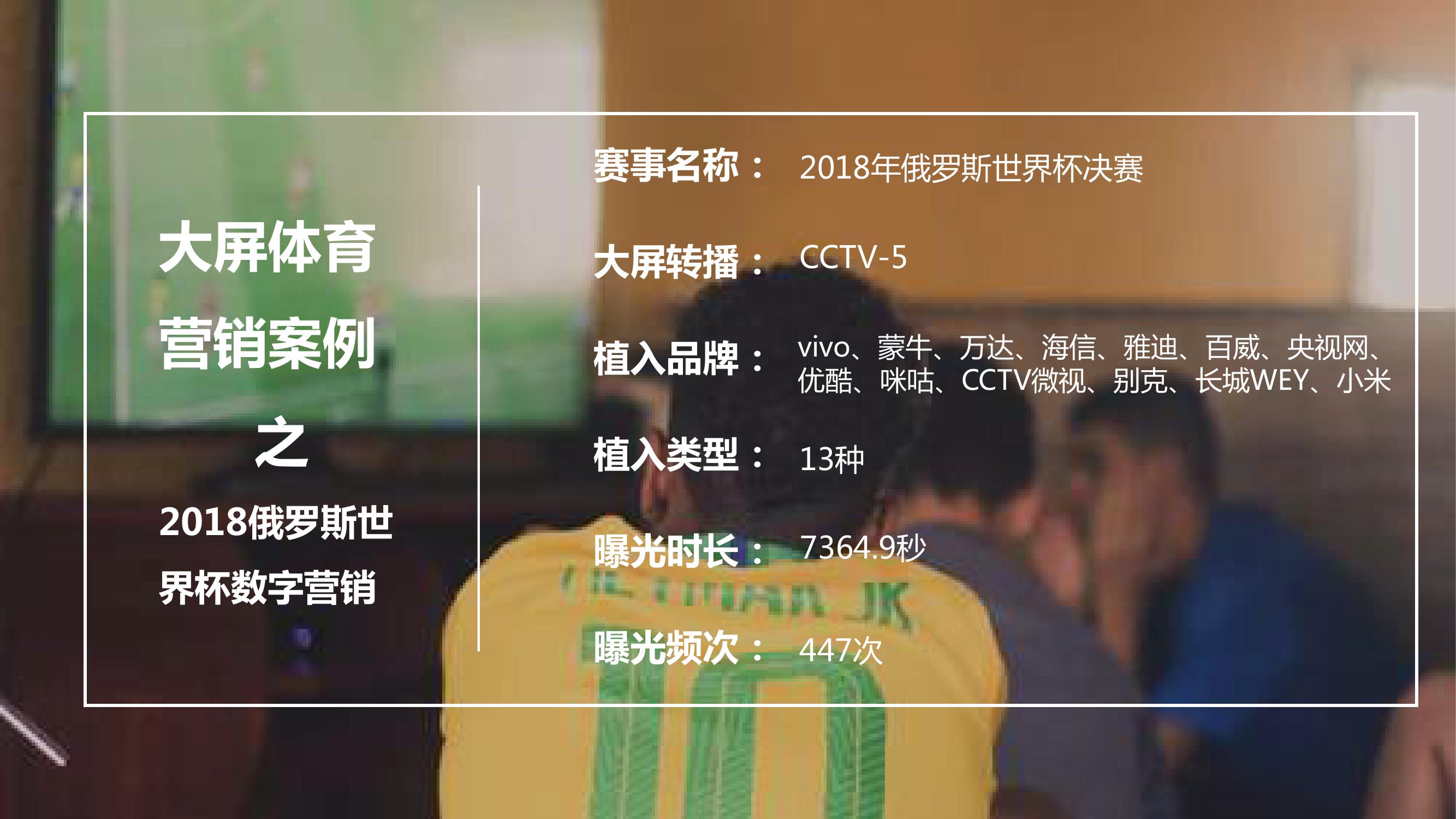 氪体&酷云互动:2019体育赛事电视大屏风向标报告 PDF版本将分享到199IT交流群,支持我们发展可加入! 更多阅读:酷云互动:关于电视,那些颠覆“三观”的认知报告酷云互动:2020年4-5月智能电视广告投放月度风向标酷云互动:2019年3月智能电视全场景月度风向标酷云互动:用户大屏触媒洞察分析酷云互动:疫情下的用户大屏触媒洞察分析报告(二)酷云互动:2020年3-4月智能电视全场景月度风向标酷云互动:疫情期电视大屏广告行业趋势洞察报告酷云互动&秒针:2020年2月-2020年3月智能电视广告投放月度风向标酷云互动:疫情下的用户大屏触媒洞察分析酷云互动:2020年1-2月智能电视全场景月度风向标酷云互动:2019年3月智能电视广告投放月度风向标酷云互动:2020年7-8月智能电视全场景月度风向标酷云互动&秒针:2019年12月-2020年1月智能电视广告投放月度风向标酷云互动:泛北京电视用户行为指南酷云互动:618电视广告效果洞察报告