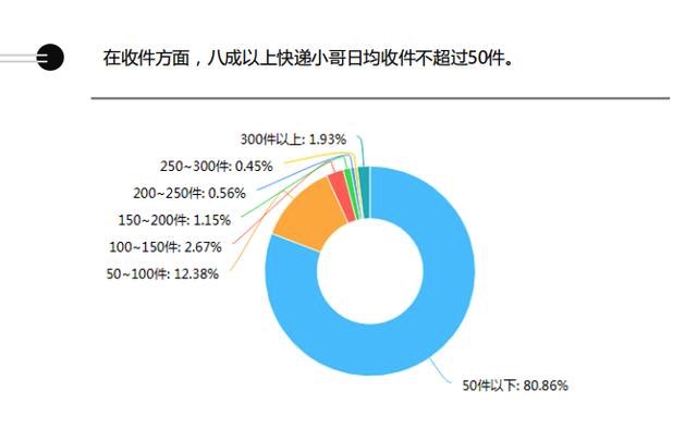 在收件方面,八成以上快递小哥日均收件不超过50件。
