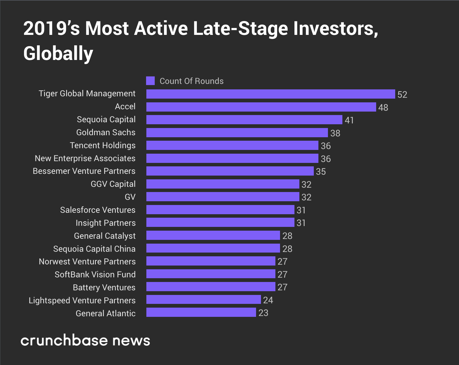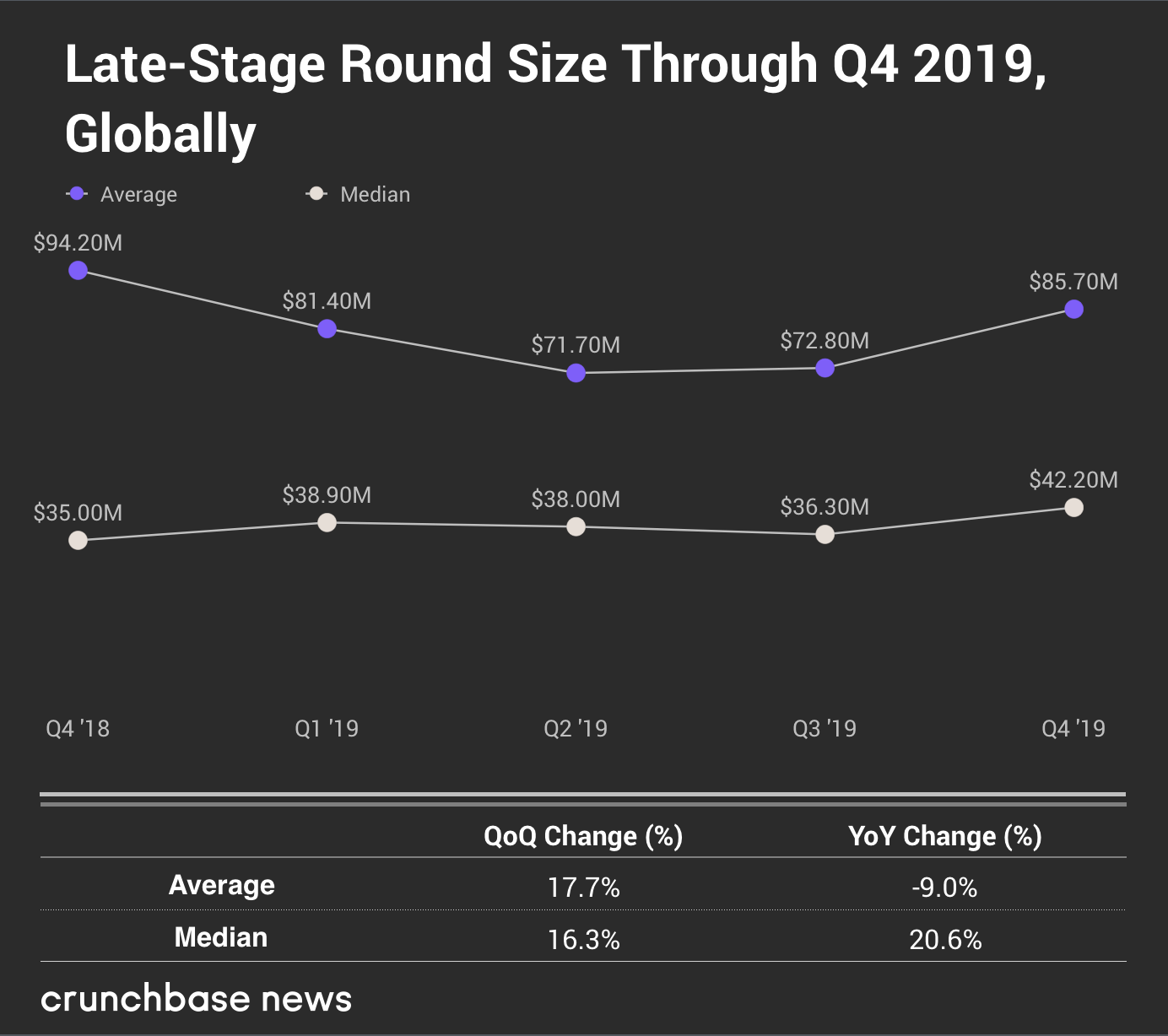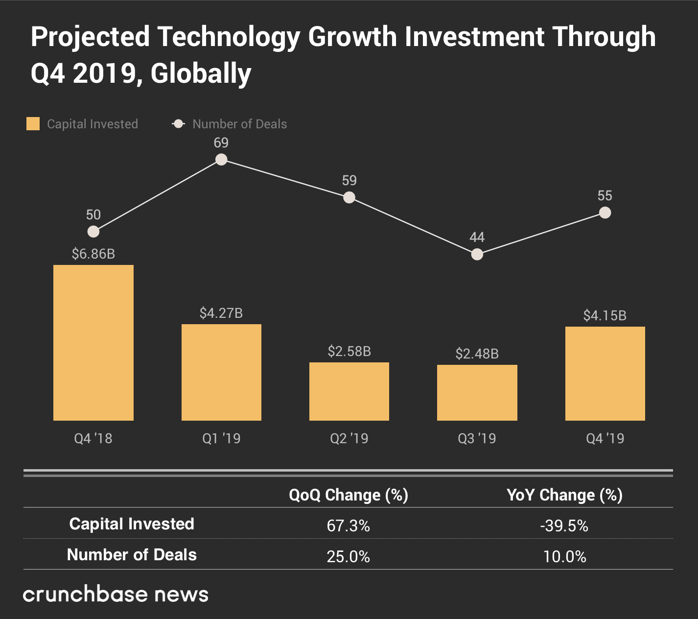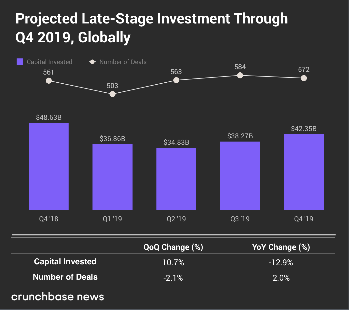 2019年第四季度后期风险投资总额比去年同期的总额下降了近13%。