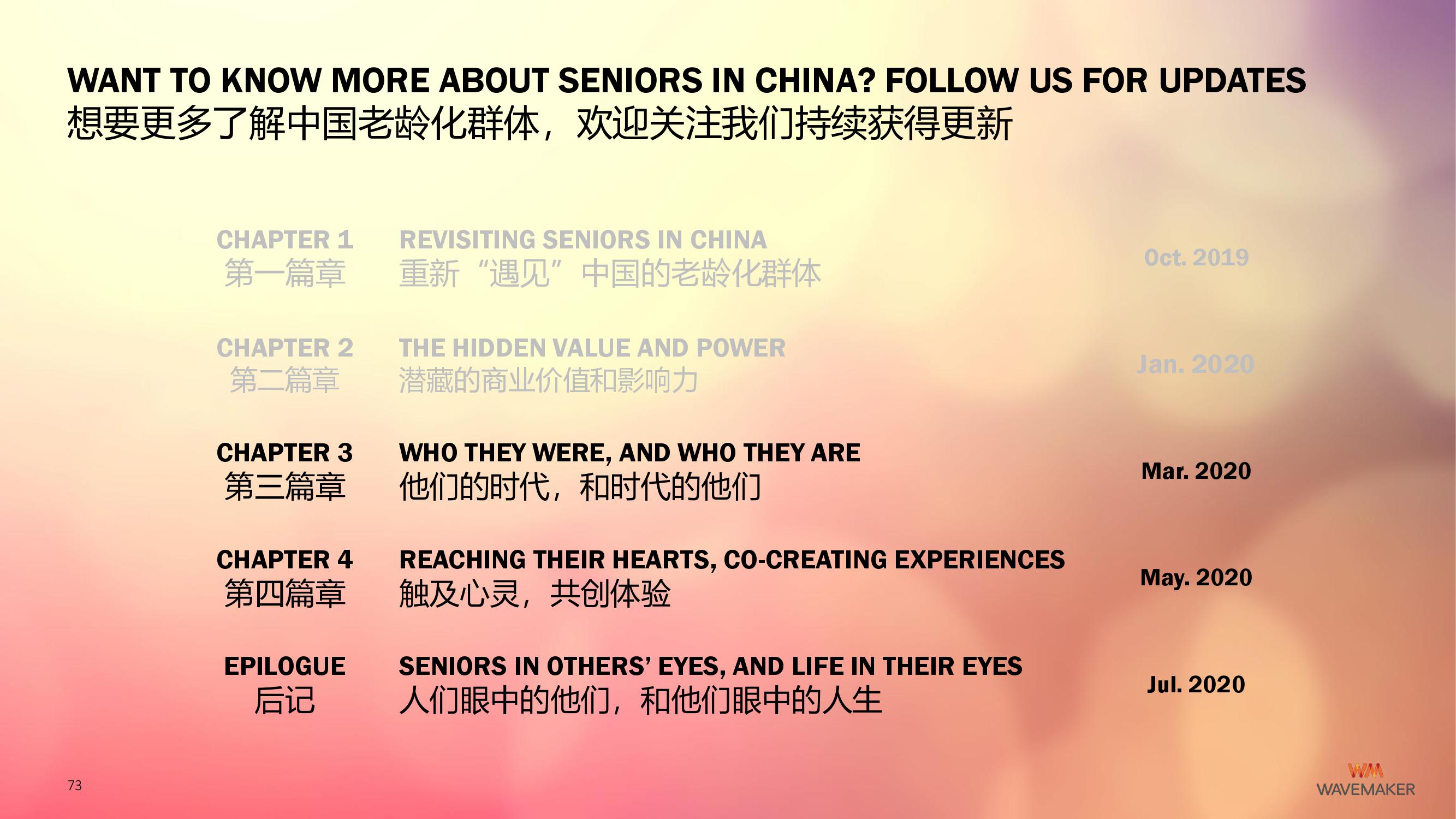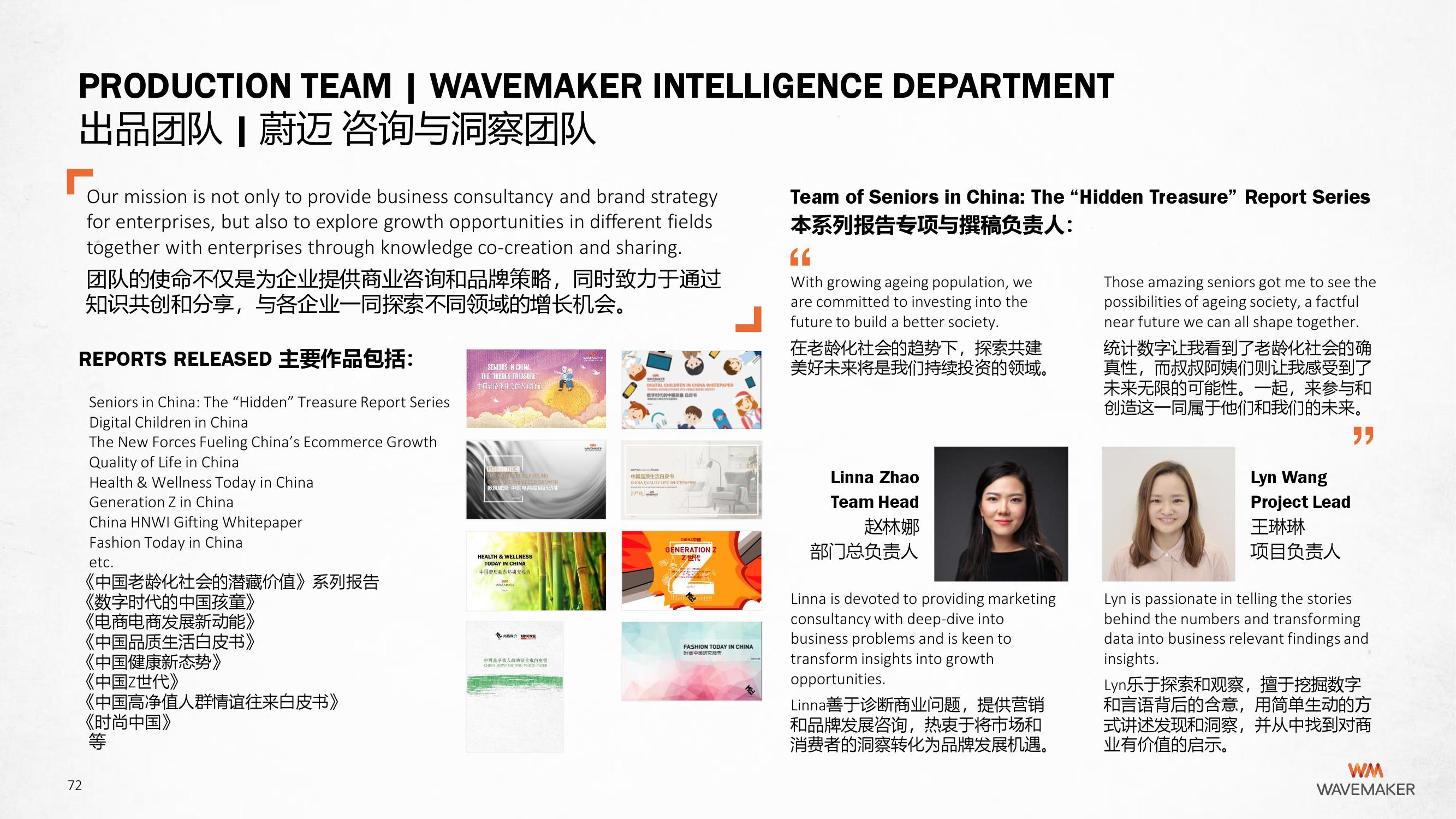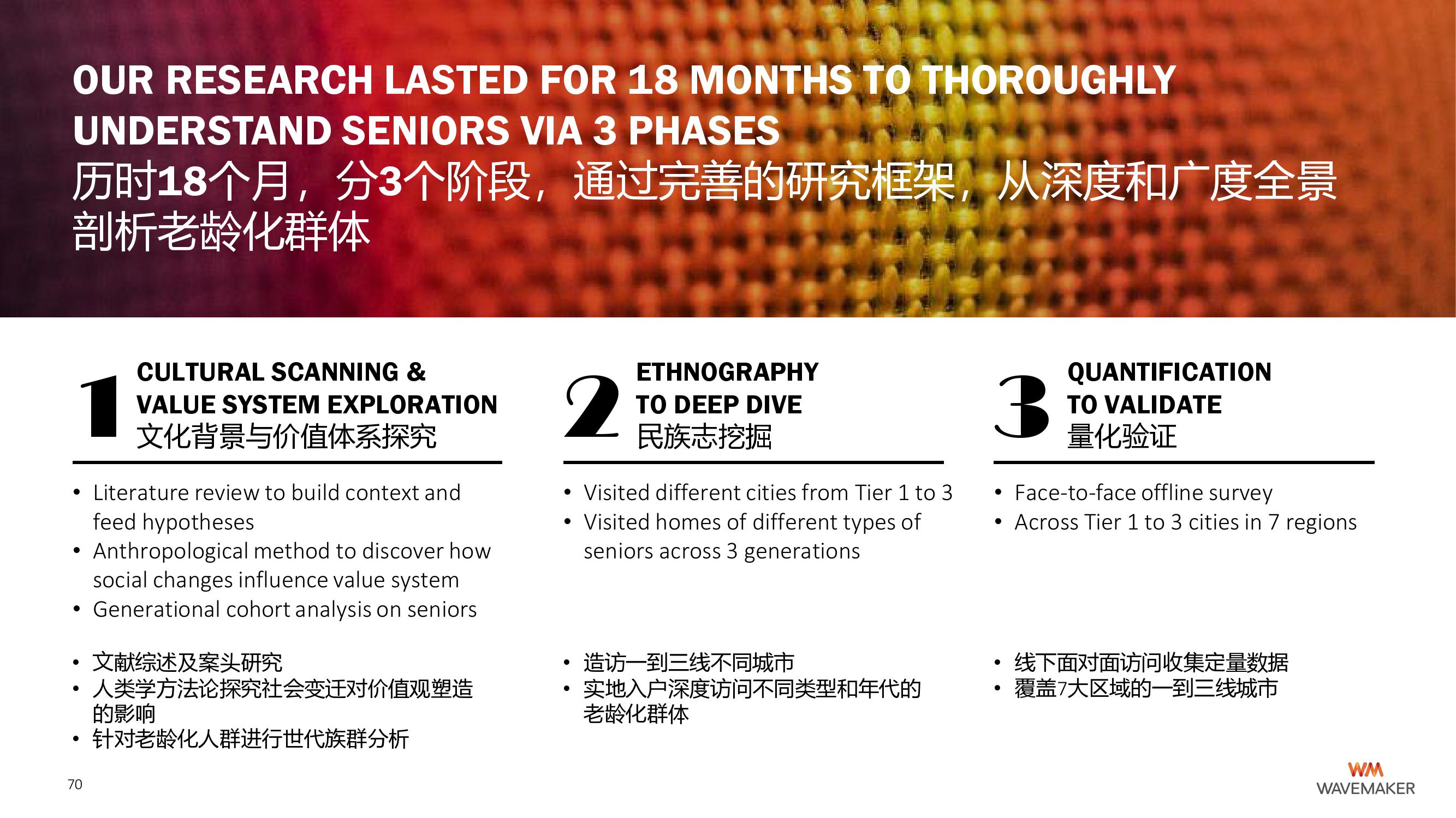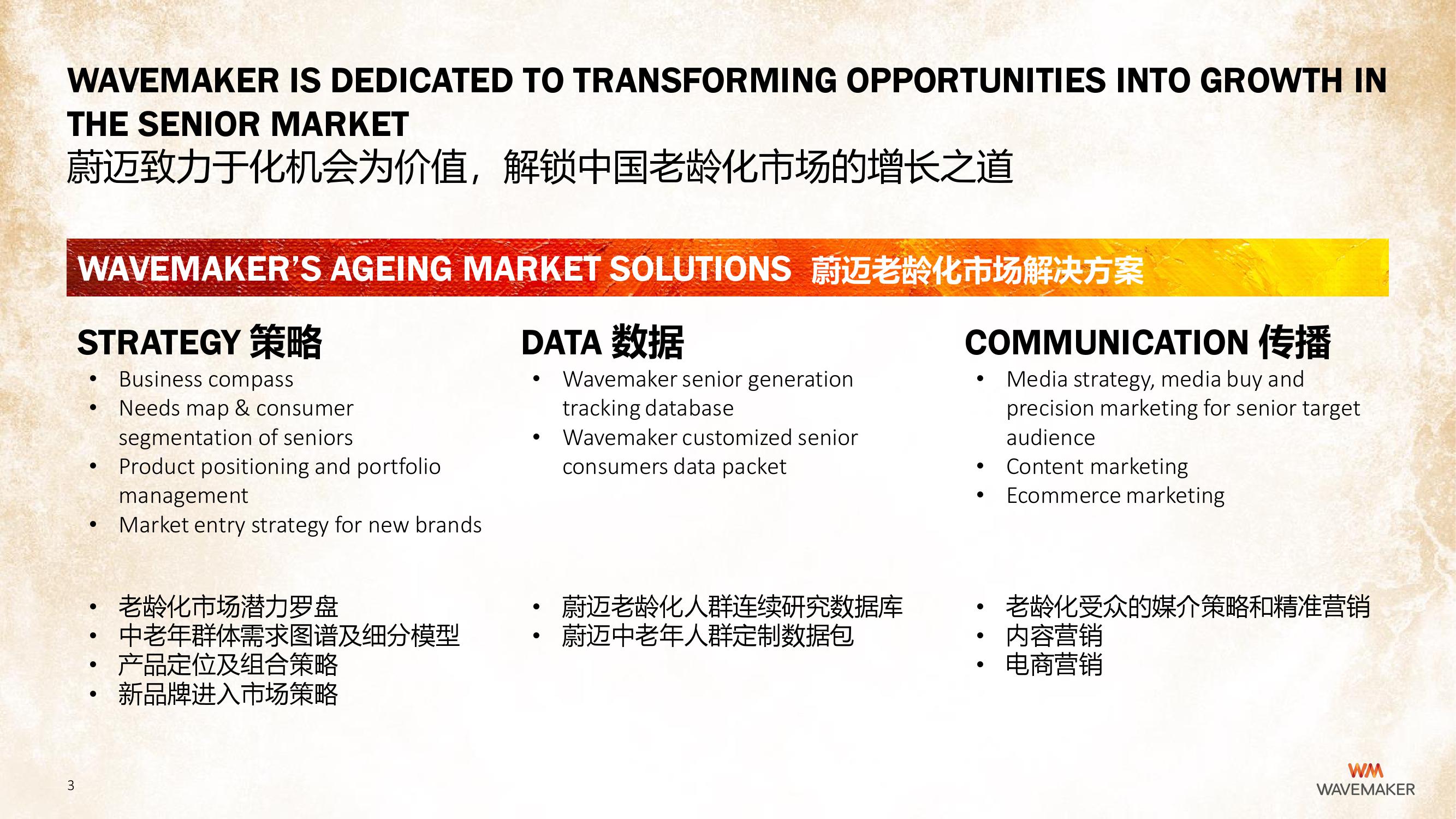 蔚迈致力于化机会为价值,解锁中国老龄化市场的增长之道,并全新首家发布蔚迈老龄化市场解决方案,包含老龄化市场潜力罗盘、中老年群体需求图谱及细分模型、蔚迈老龄化人群连续研究数据库等。旨在助力各行各业,探索老龄化市场的庞大潜力。