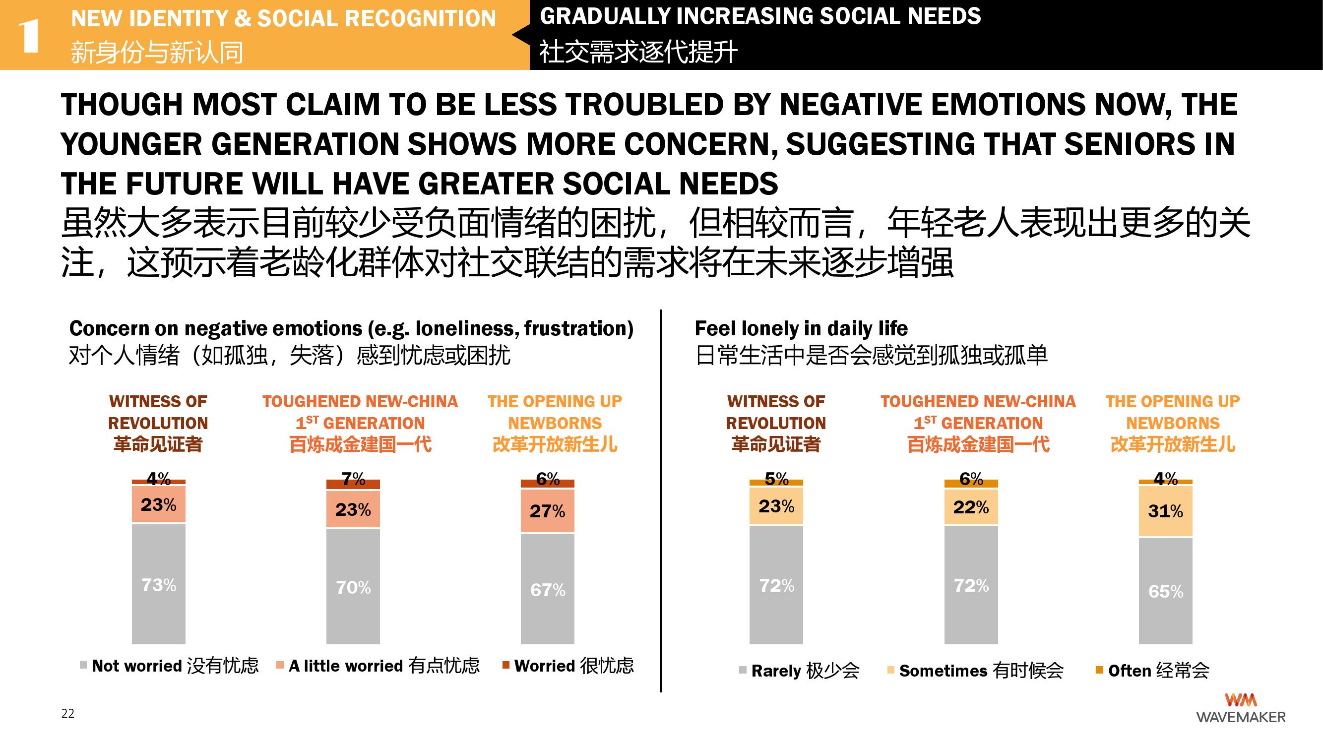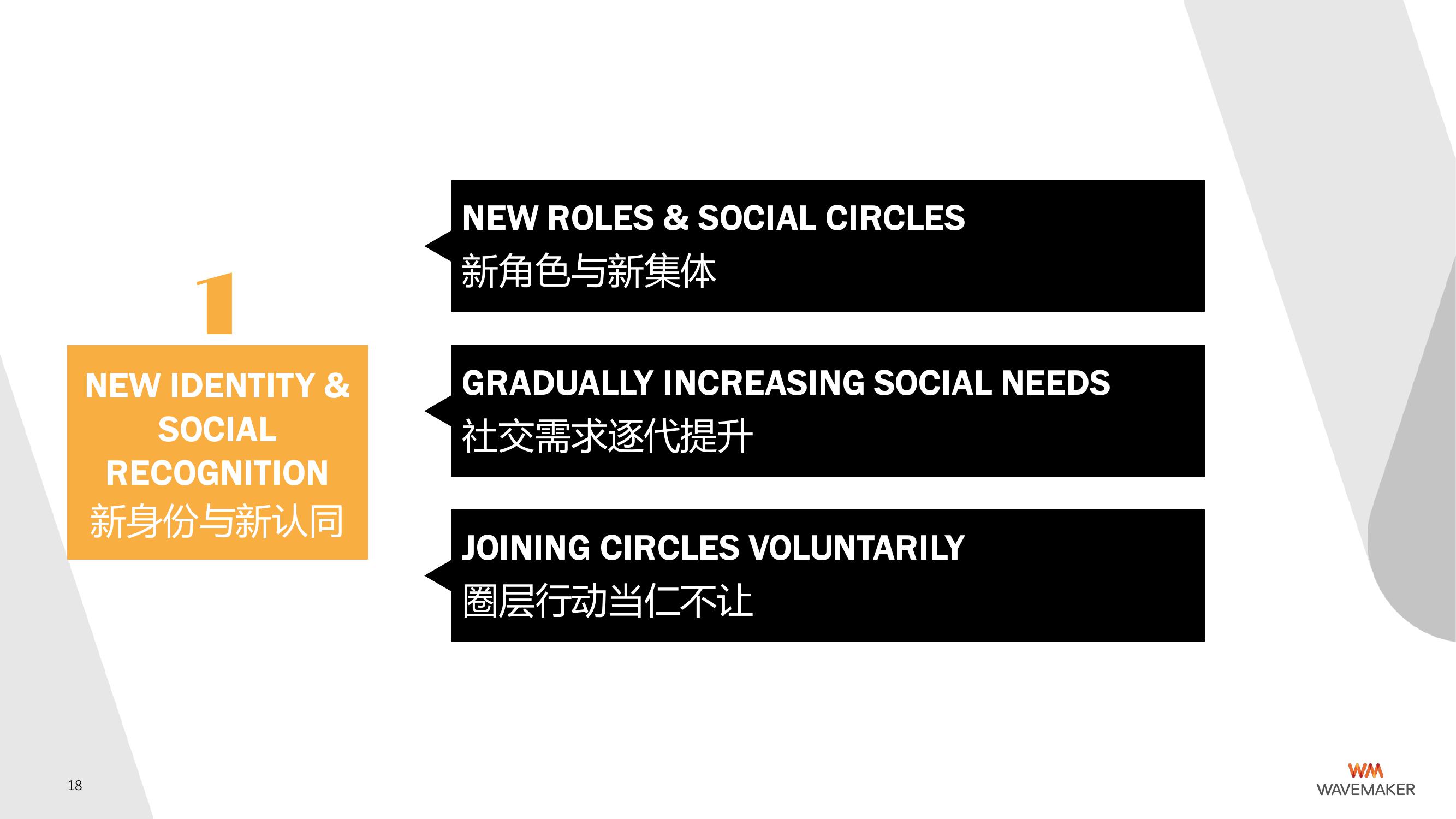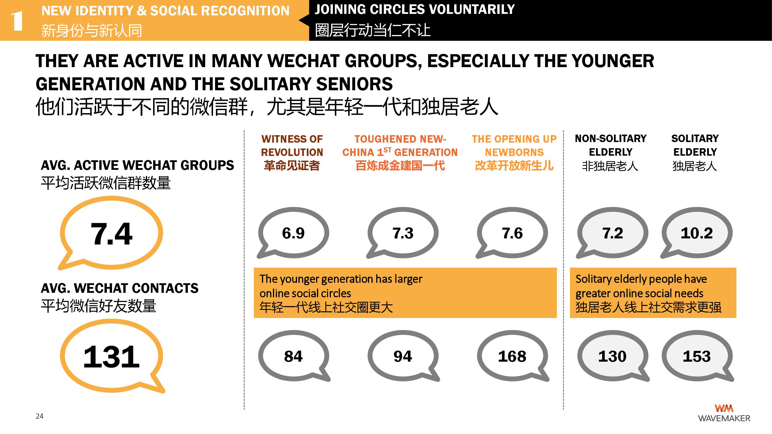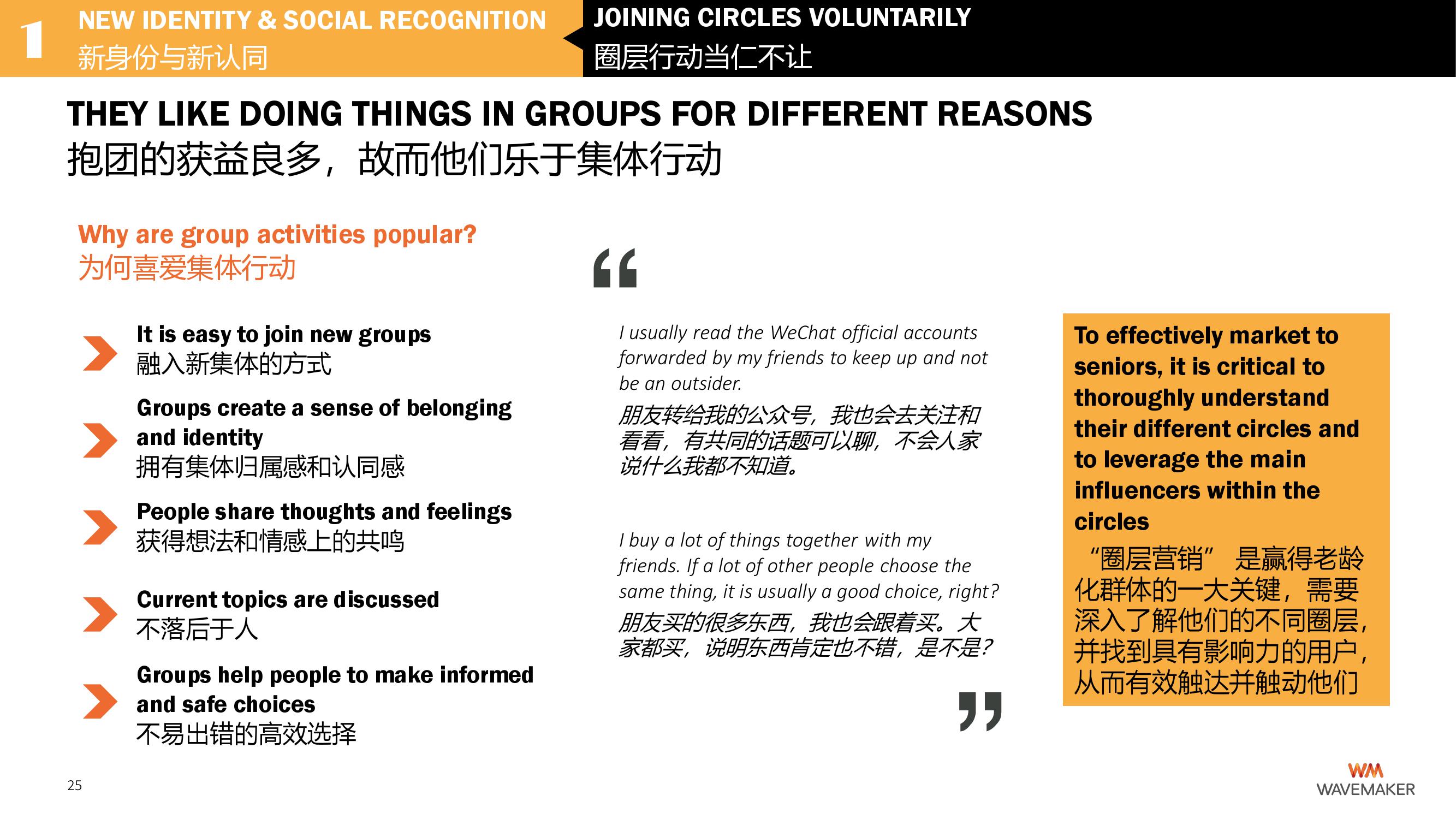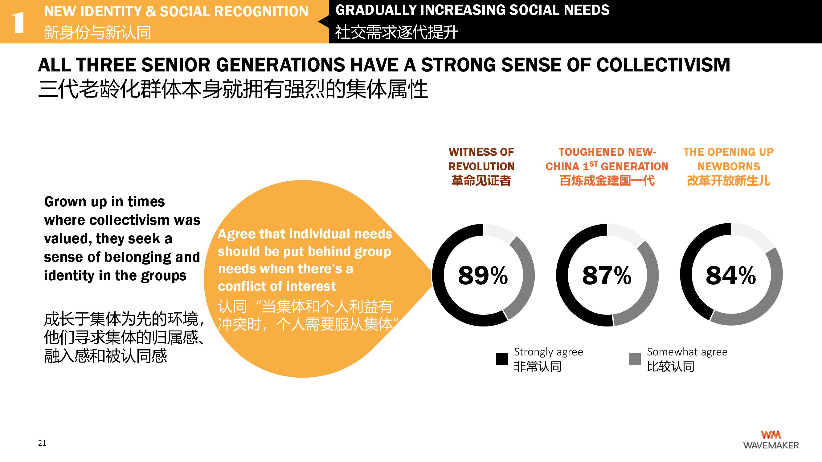 无论是退休后从工作圈回归生活圈、建立兴趣驱动的社交圈、还是移居或流动于新的城市或社区,老年生活往往会开启“新”的角色和人际网络。成长于集体为先的社会环境,他们寻求集体的归属感和认同感,表现出增长的社交需求,热衷于抱团行动。