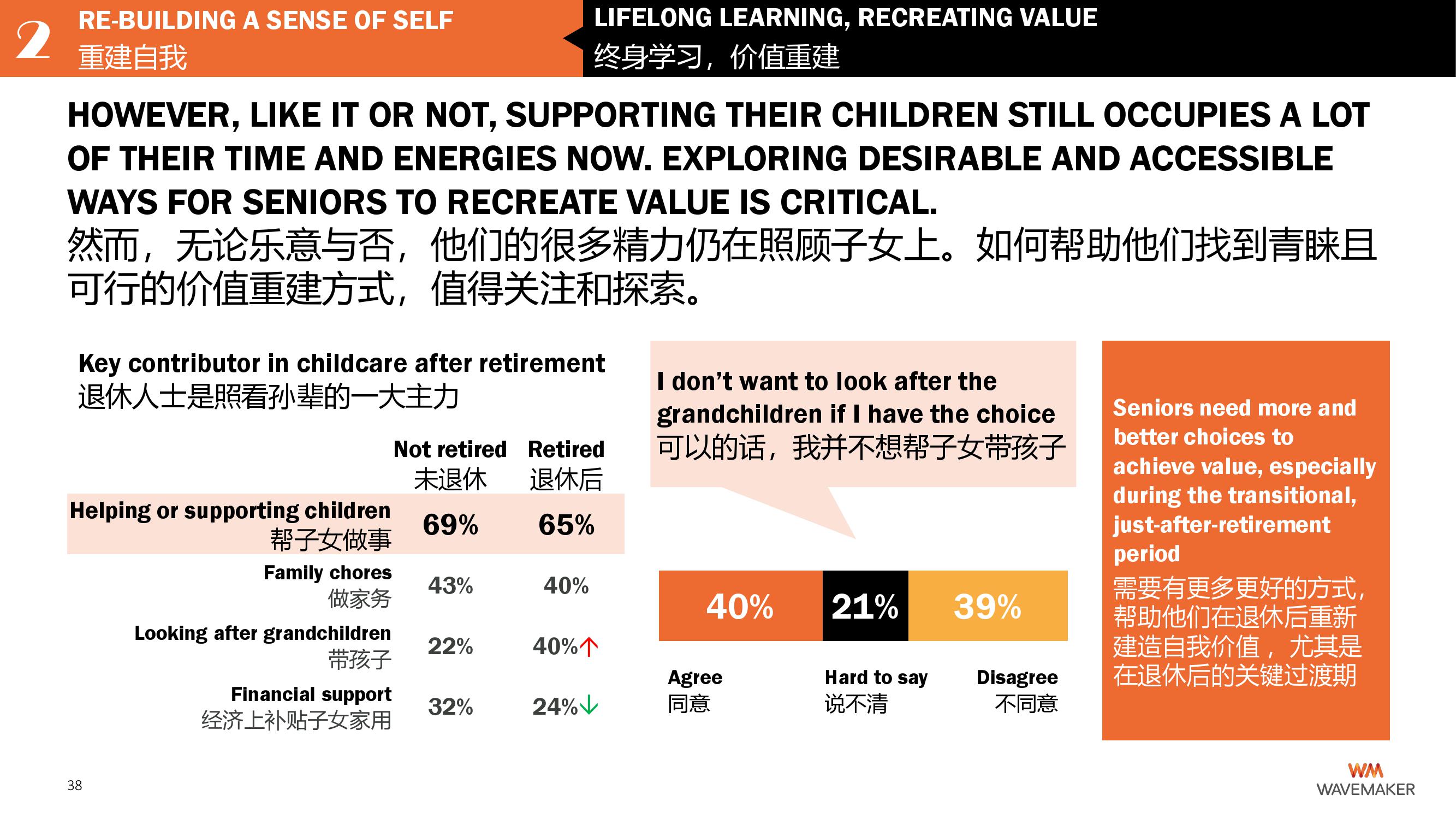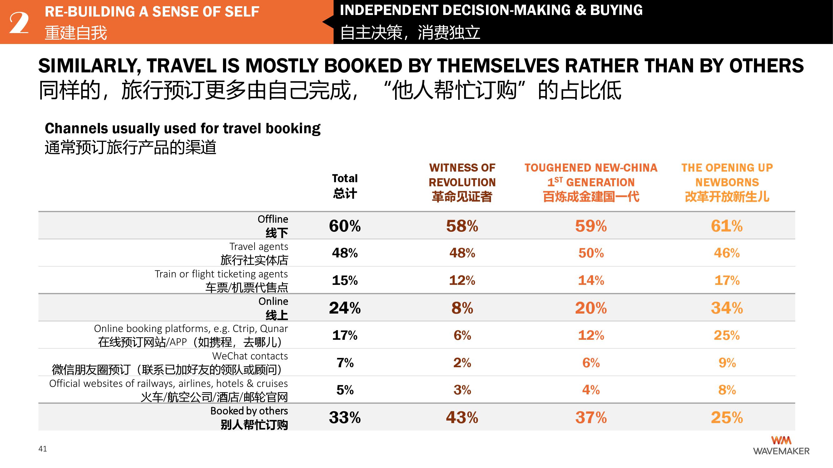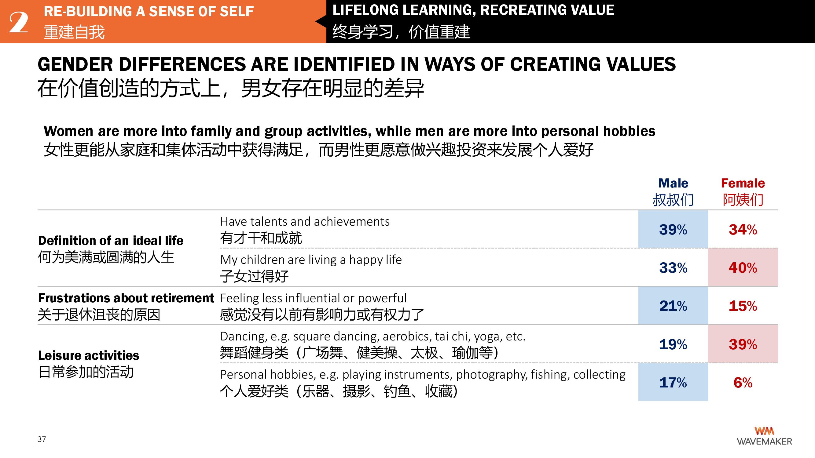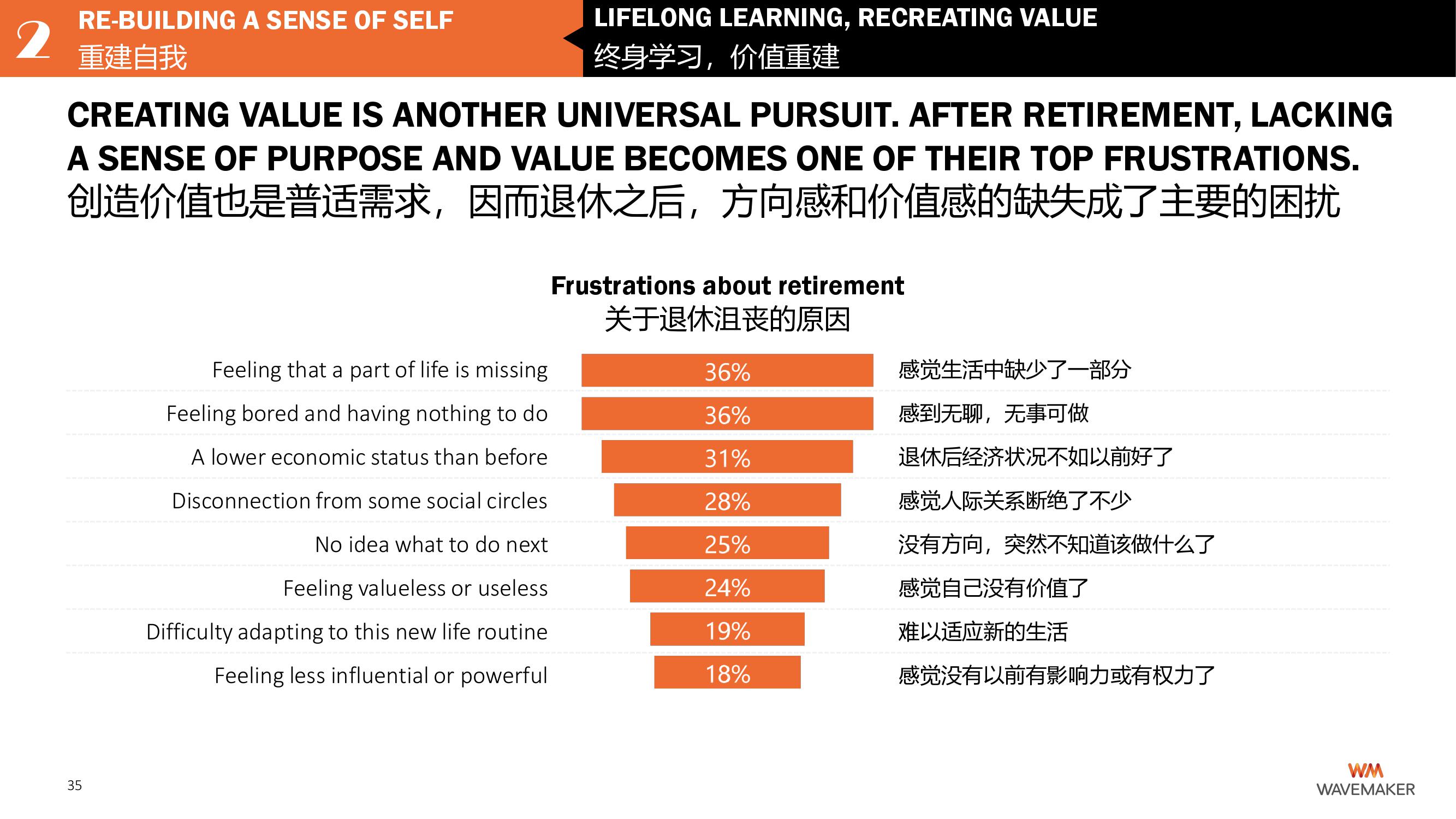 历经峥嵘也或曾遗憾,在人生的新阶段,他们开始寻回自我,尽兴而活。他们本着不再受限、不留遗憾、再不错过的心态,渴望自我释放、重拾梦想、把握当下。他们的生活场景由家庭向外界延伸,更多的社交、休闲、运动、旅行、自我学习和精进等,也带动着不同品类的增长。比如,旅行的方式和需求更加多样化,有广度也有深度。他们终身学习和提升自我的强烈意愿得见于每一个代际,退休后的价值创造更是关注的重点。
