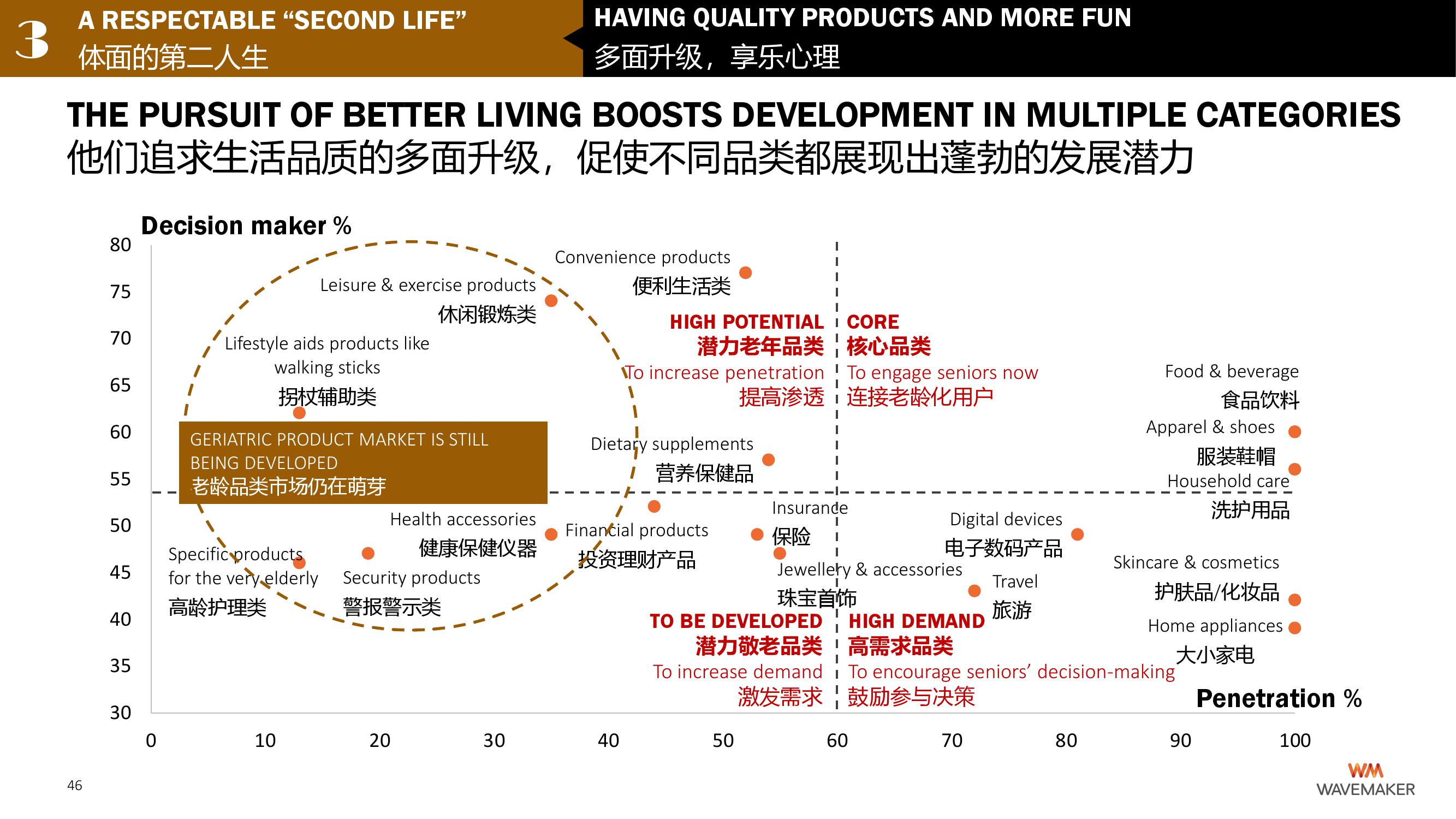 《潜藏的商业价值和影响力》报告剖析了催生万亿银发经济的四大需求,以及其所创造的、释放更多消费潜力的重要机遇。
