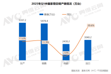 奥维云网:2025年Q1空调销量近5500万台 同比增长11.6%
