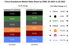 Counterpoint:2024年Q3中国智能手机销量同比增长2.3%