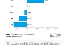 2025年Q1中国主要智能手机厂商销量同比(附原数据表)