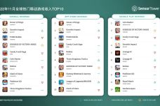 Sensor Tower:2022年11月全球热门移动游戏收入TOP10