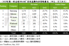 2023年Q2全球DRAM厂商内存营收市场份额(附原数据表)