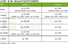 TrendForce:预估2024年第二季DRAM价格涨幅将收敛至3~8%
