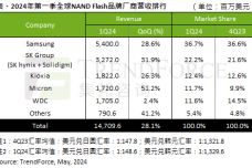 TrendForce:2024年第一季全球NAND Flash产业营收季增28.1%