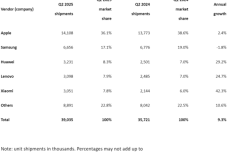 2025年Q2全球主要厂商平板电脑出货量市场份额(附原数据表)