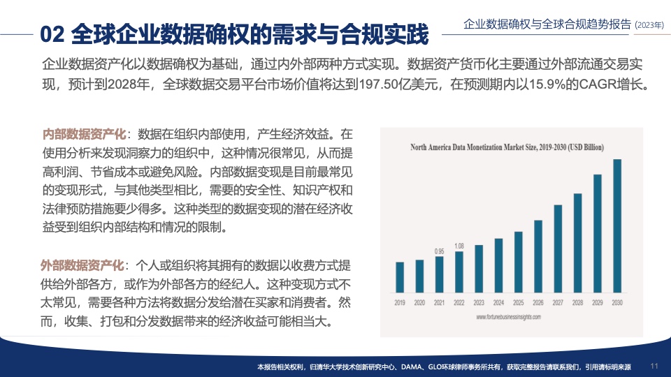 报告发布了全球数据交易规模与中国企业合规调研结果,预计到2028年,全球数据交易平台市场价值将达到197.50亿美元,在预测期内以15.9%的复合增长率增长。