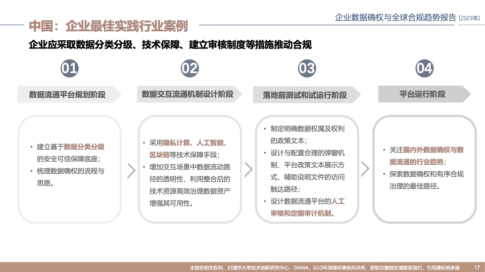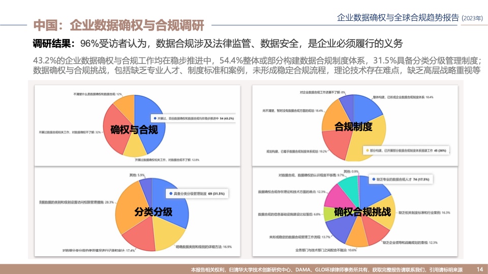 中国96%的受访企业认为,数据合规是企业必须履行的义务,但企业数据确权与合规挑战,面临缺乏专业人才、制度标准和案例,未形成稳定合规流程,理论技术存在难点,缺乏高层战略重视等多项难题。报告还总结了中国企业数据确权与合规的最佳行业实践。