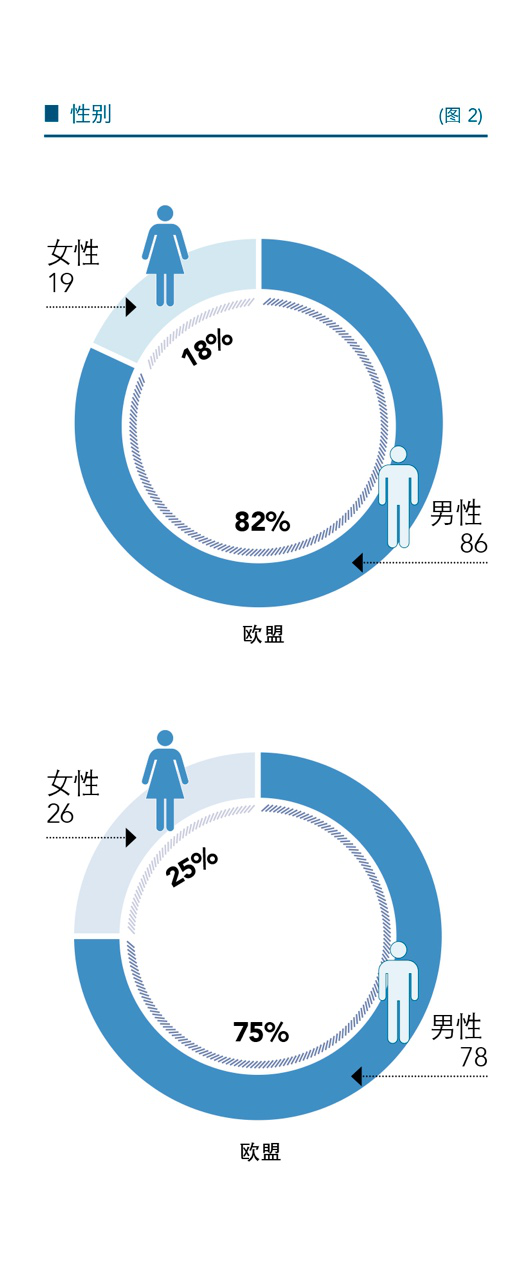 性别:我们发现,中国创业者中有25%是女性,而欧盟则只有18%.。