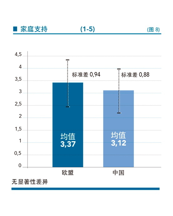同时,两组群体都获得了家人中等水平的支持(图8)。