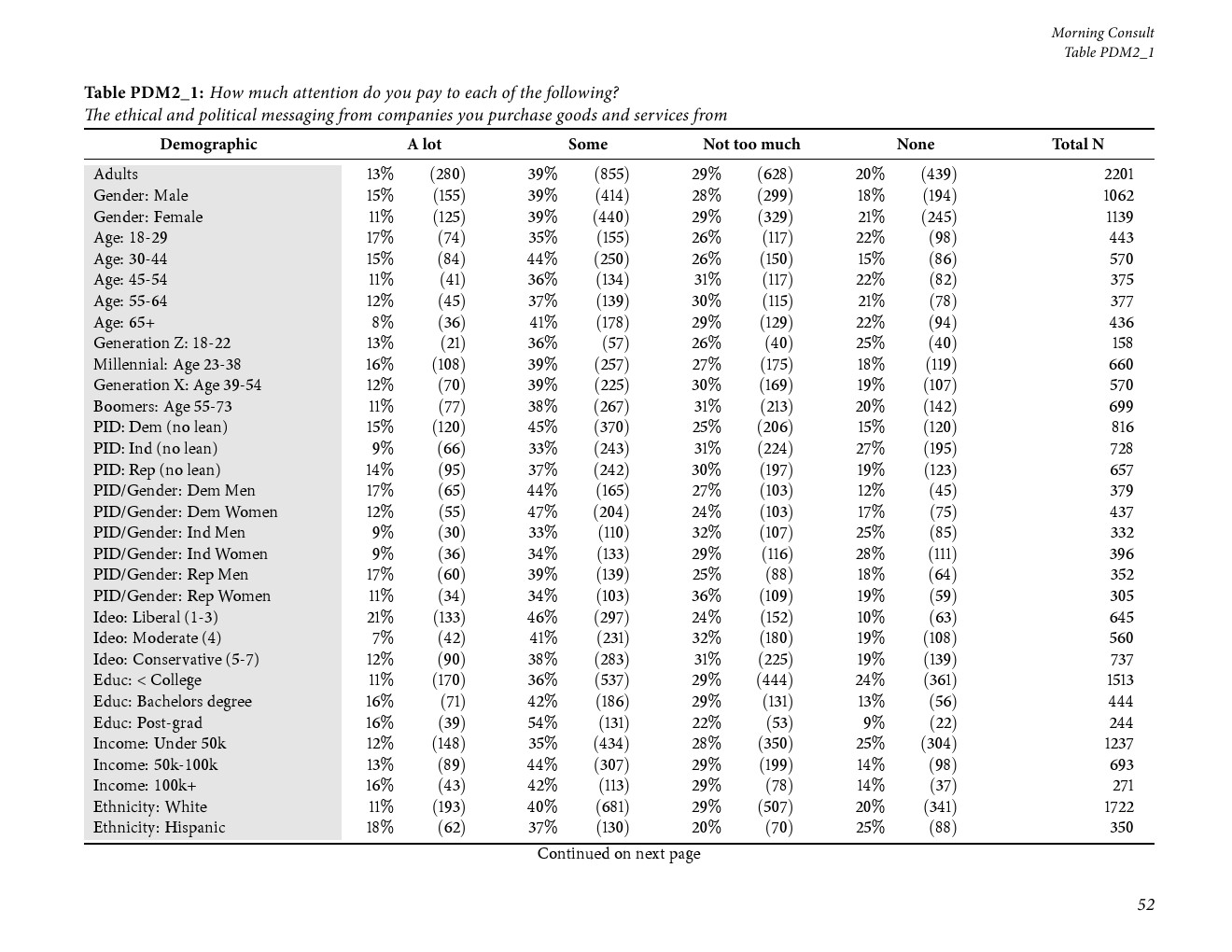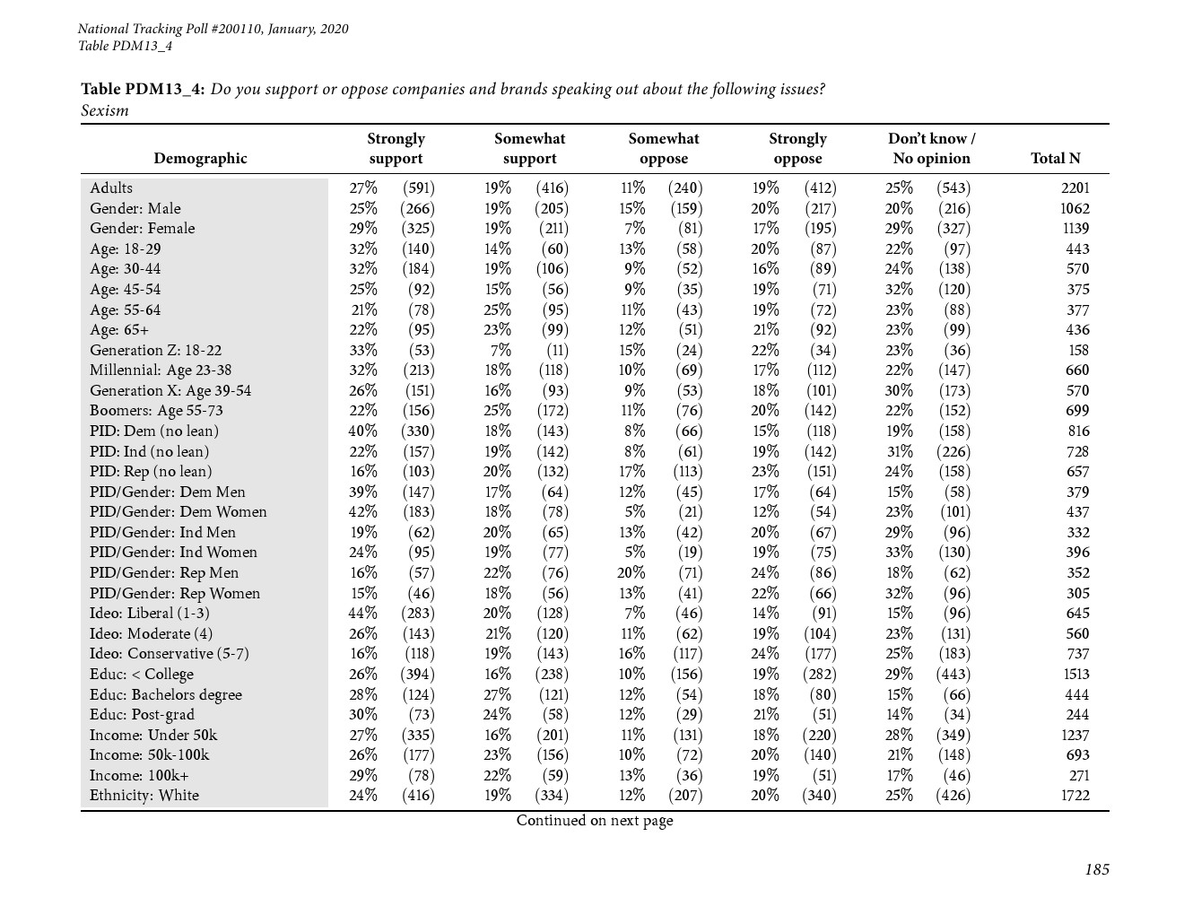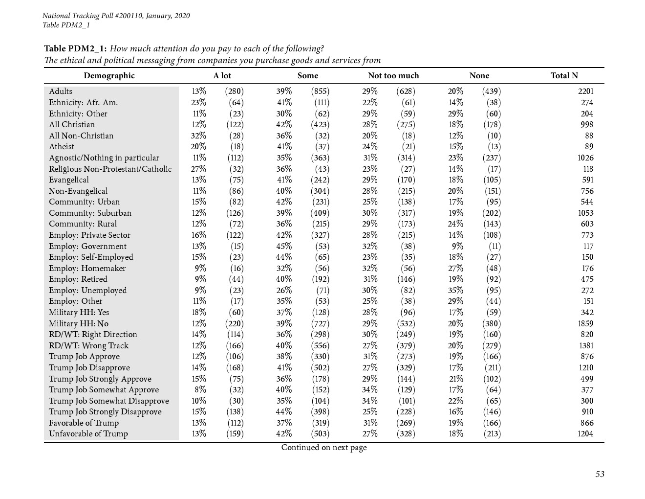 Morning Consult和PRWeek对2200多名美国成年人进行了一项调查,并发布了“2020年1月全国追踪调查报告”。消费者可能希望公司对社会问题有承诺,但他们不一定想听到这一点。事实上,美国消费者更有可能认为品牌正努力地表现出自己关心企业社会责任问题(42%),而不是展示出对超出底线问题的承诺(36%)。这一点在老一辈人中尤其如此,而年轻人则不那么怀疑。