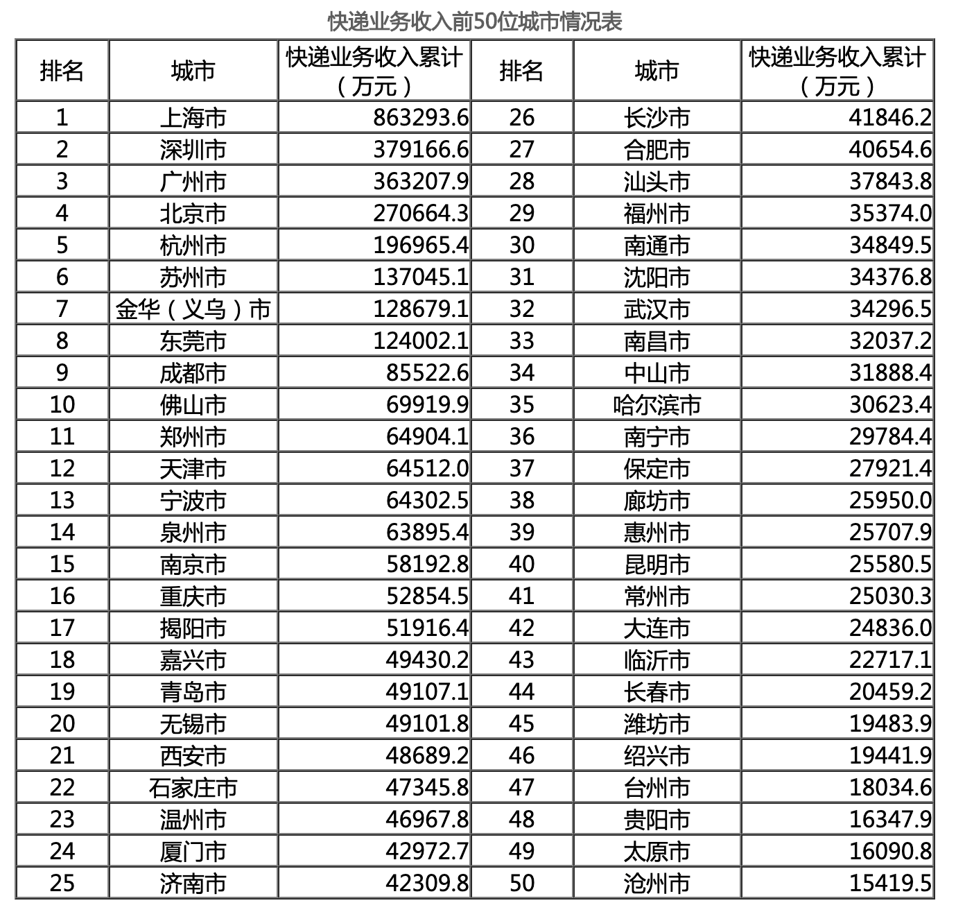 1月份,东、中、西部地区快递业务量比重分别为79.6%、12.2%和8.2%,业务收入比重分别为79.8%、10.9%和9.3%。与去年同期相比,东部地区快递业务量比重上升0.6个百分点,快递业务收入比重上升个0.4百分点;中部地区快递业务量比重下降0.8个百分点,快递业务收入比重下降0.6个百分点;西部地区快递业务量比重上升0.2个百分点,快递业务收入比重上升0.2个百分点。