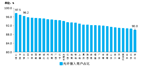 100Mbps及以上接入速率的固定互联网宽带接入用户占比情况