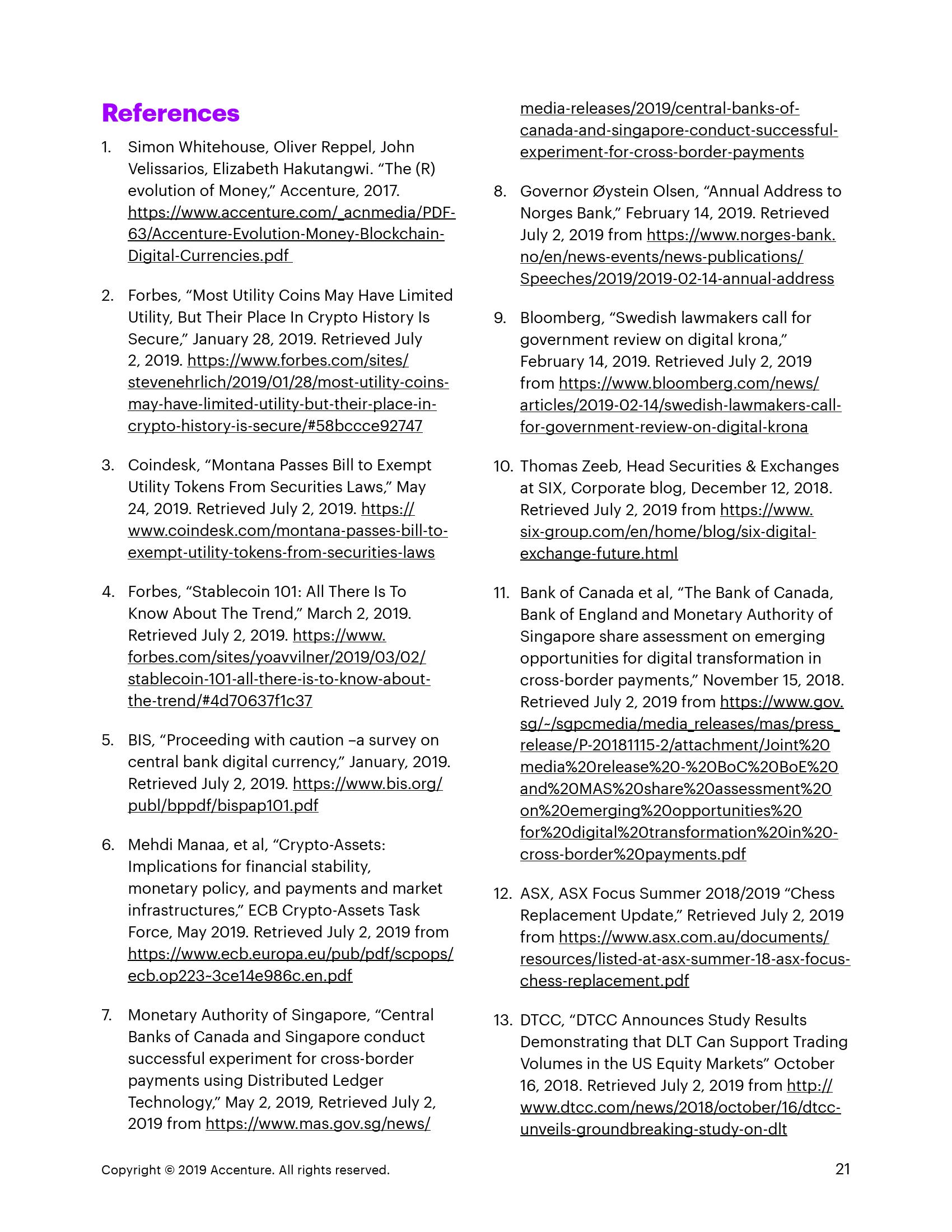 标记化和分散化对于满足新的资金需求和建立更直接,透明和高效的支付系统至关重要。令牌化已成为表示商品,资产和权利的格式。它提供了新的财务效用和属性,承诺更大的灵活性和流动性。中央银行发行的数字货币(CBDC)或代币化的中央银行资金利用了区块链的分散和安全优势。这可实现点对点交易,提供更具弹性的支付基础架构,降低交易成本,增强信息共享功能并促进数据协调。支持区块链的支付解决方案已经过北美,欧洲和亚洲的中央银行的严格测试。下载报告以了解有关这些发展的更多信息。