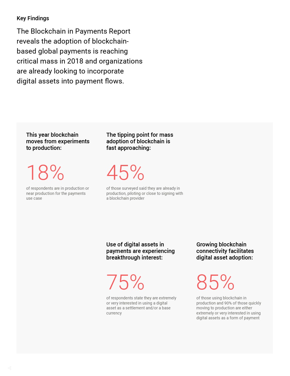 Ripple发布了新报告“支付中的区块链”,2018年基于区块链的全球支付的采用率正在达到临界值,各企业已经在寻求将数字资产纳入支付流程中。