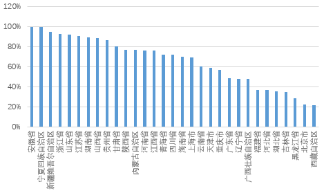 从不同区域和城市旅游复苏节奏来看,由于各地疫情防控和旅游业管控政策的不同,不同省份和城市的旅游景区复工和消费复苏情况差异较大。清明节期间(截至4月5日),旅游景区复工率排名前十位的省份分别是安徽、宁夏、新疆、浙江、山东、江苏、湖南、山西、贵州、甘肃,复工率排名靠前的多为南方地区省份和西北地区省份。在各省复工率排名中,安徽省旅游景区复工率排名最靠前(见图2)。