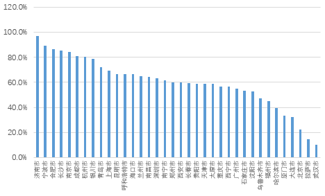 36个重点城市(包括直辖市、省会城市、首府及5个计划单列市)中,旅游景区复工率排名前十位的城市分别是济南、宁波、合肥、长沙、南京、成都、杭州、银川、青岛、上海。其中,济南市旅游景区复工率最高,达到97.1%(见图3)。上述城市旅游复工率领先,与这些城市采取发放电子消费券等一系列促进旅游消费的举措是密不可分的。例如,山东省济南市面向景区、旅行社、影院、演艺场所、书店等推出2000万元文旅消费券,推出“云上游泉城”系列线上服务,组织“济南人游济南”“山东人游济南”“万人乡村游”等活动,助推旅游市场恢复活力。江苏省南京市推出3.18亿元的消费券,涵盖乡村旅游、信息、餐饮等7大类别。