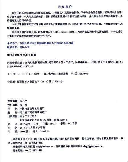 目前,越来越多的公司试图通过数据驱动业务。在国外,近几年关于网站分析的工具层出不穷,无论是集成各种功能的,还是针对某个应用领域的;同时很多网站分析相关的书籍也渐渐丰富起来,让我们可以更系统地接受各种知识。相比国外,国内的网站分析工具和书籍相对较少,但很多专业人士都在进行着各种各样的实践和探索,努力地推动网站分析行业发展。作为网站分析的爱好者,我们将自己在这个行业中所掌握的知识、在日常工作中遇到的问题,以及积累的经验进行整理汇总,在这本书中与大家分享。如果本书的内容能让你有些许收获,解决工作中的一两个问题,那都将是我们最大的荣幸。