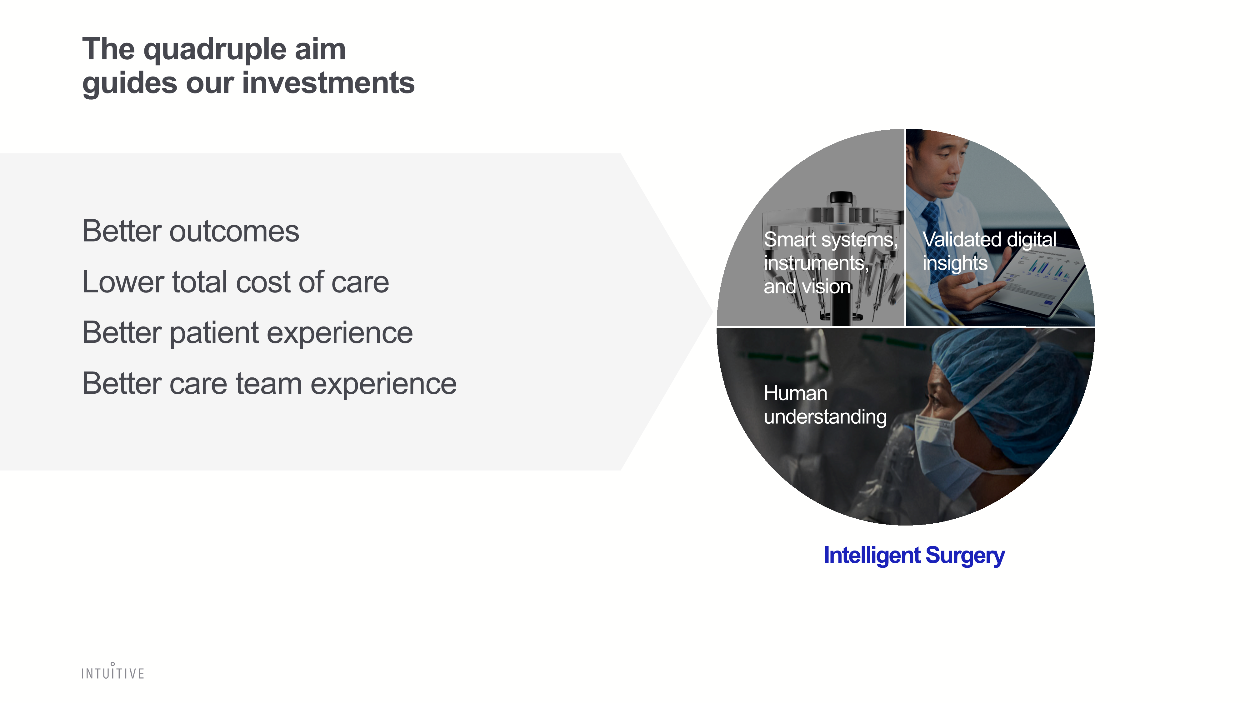 公司根据四个目标指导投资:(1)更好的产出;(2)更低的整体医疗成本;(3)更佳的病人体验;(4)更优的医护团队体验。