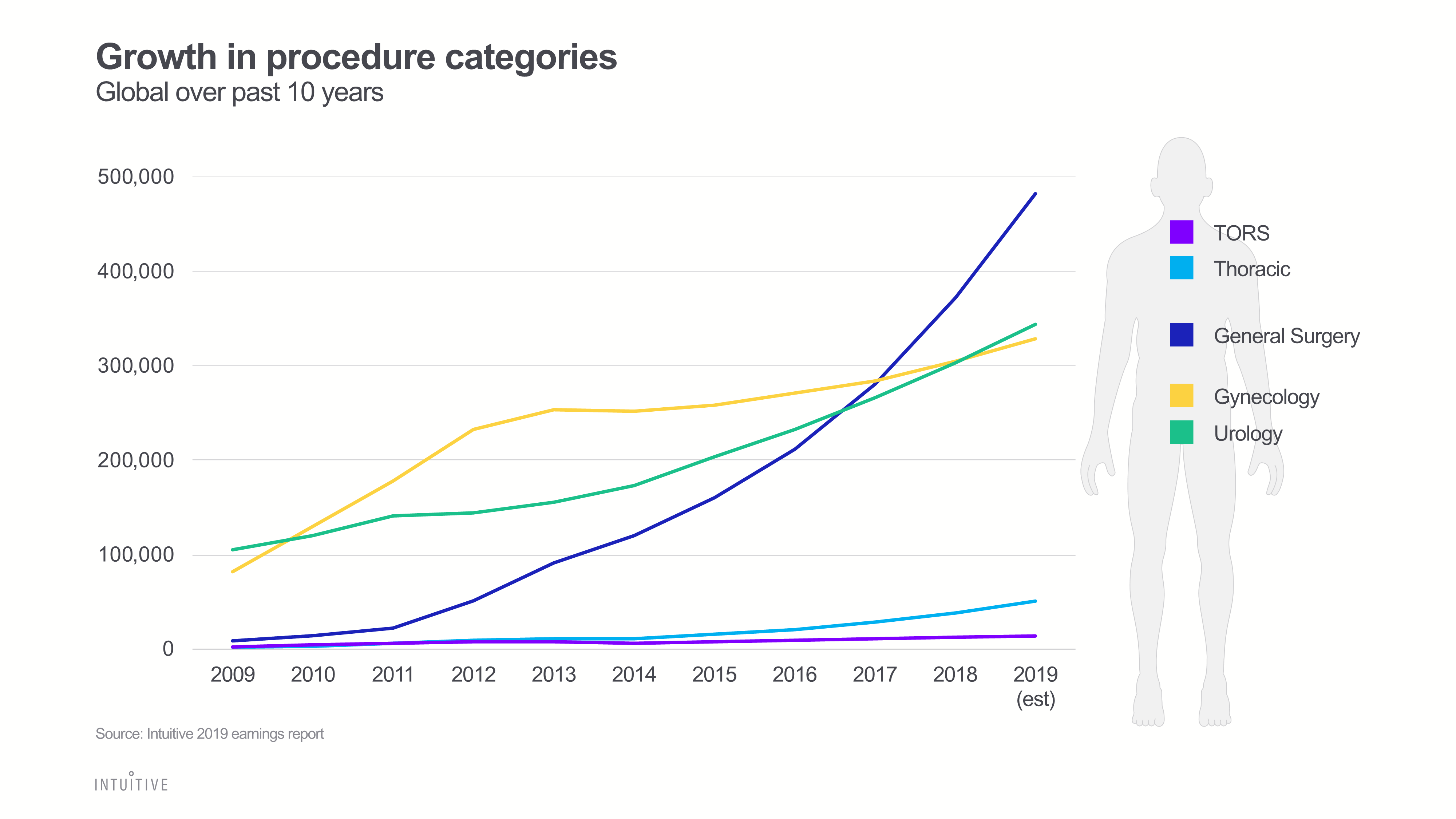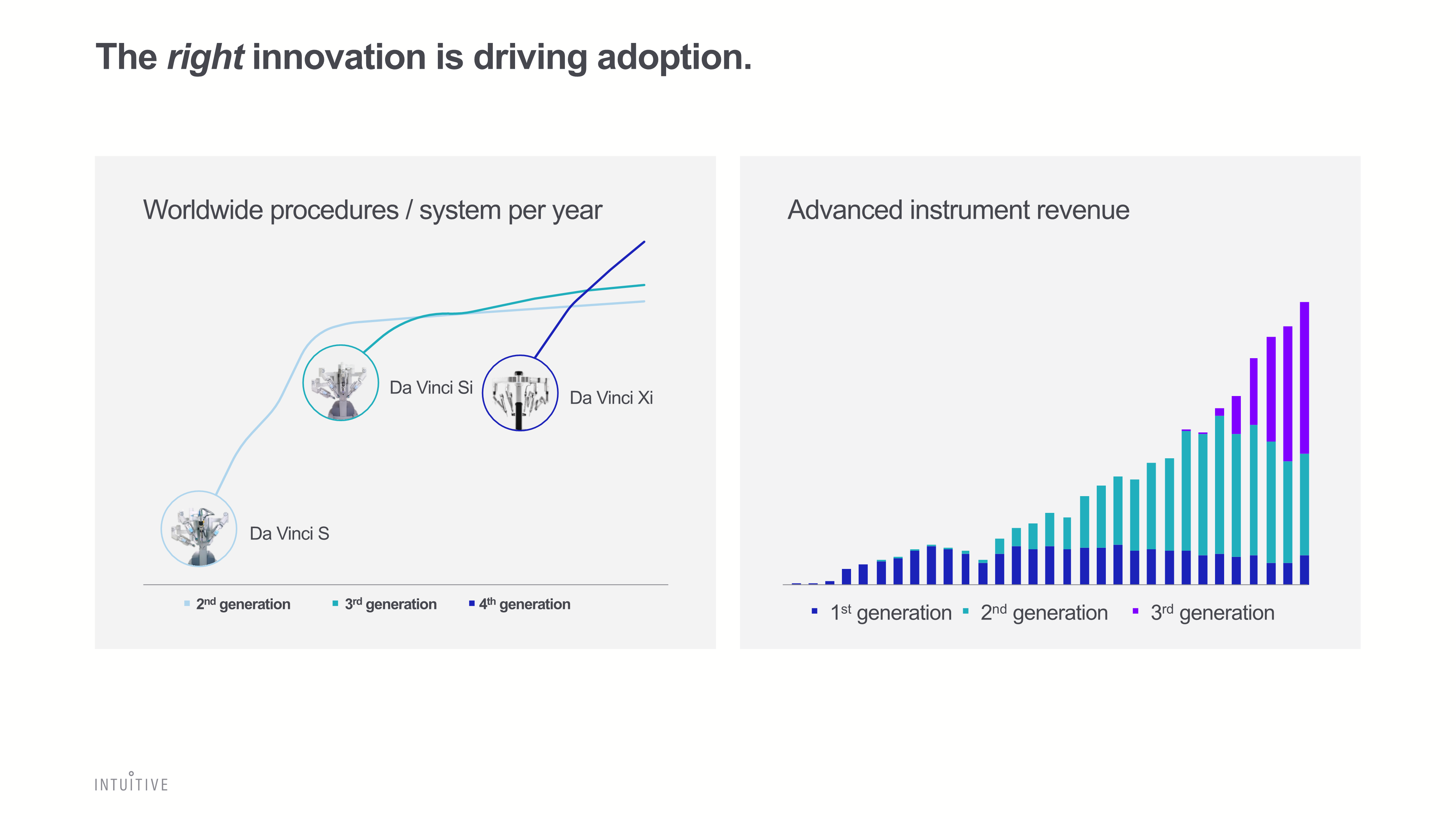 这些有效的创新推动了市场的普及,新的机器人手术设备被市场所采纳,这也带来了更高的手术数和收入。