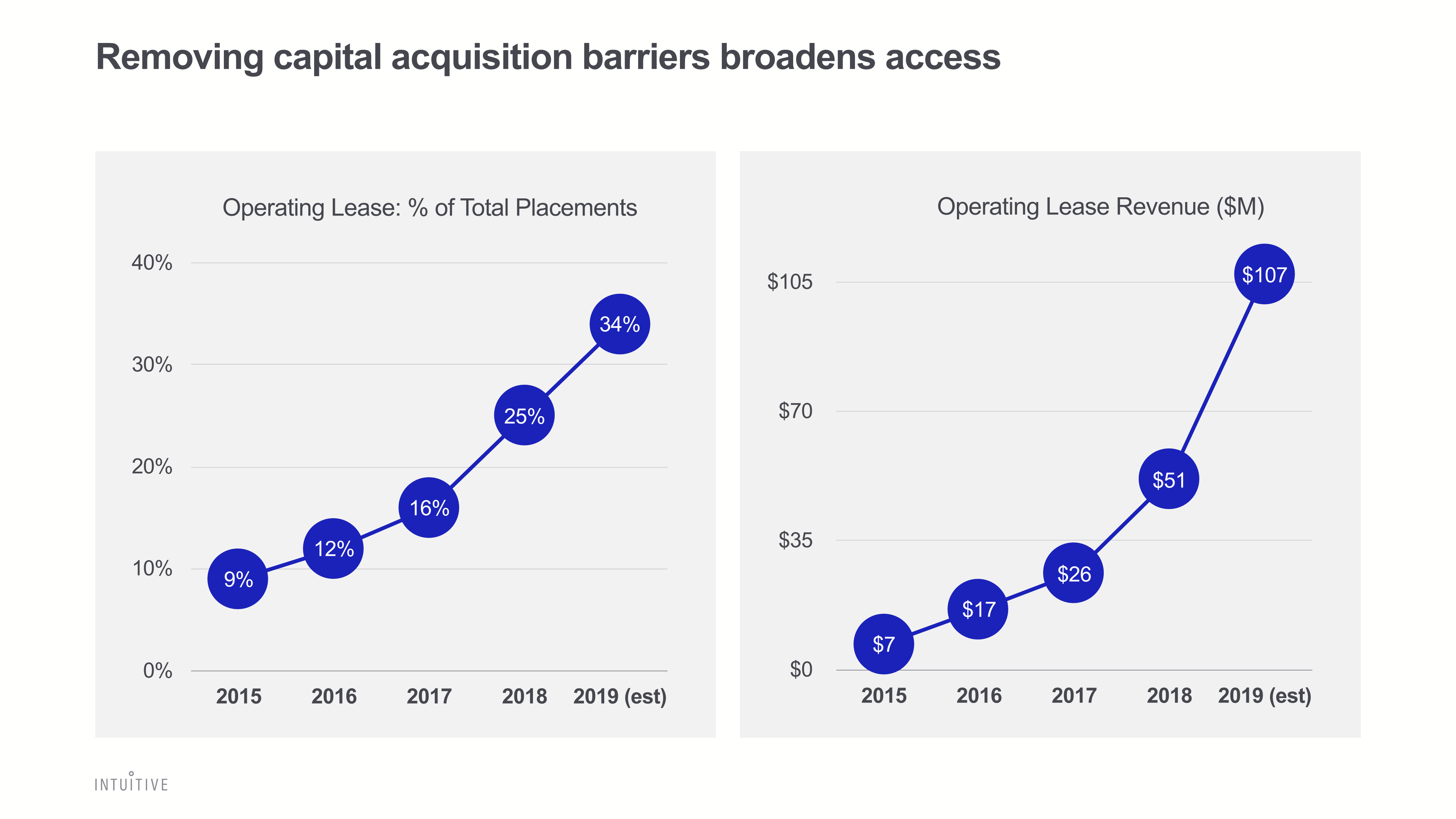 公司消除资金获取障碍可以拓宽客户获取。运营租赁占设备部署的比例达到34%,创造收入在1亿美元以上。
