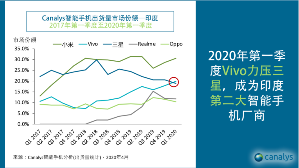Canalys指出,小米利用两大核心优势即继续投资打造本地生产和供应链,以及高效的线上线下渠道营销策略,仍占据印度市场的龙头位置。