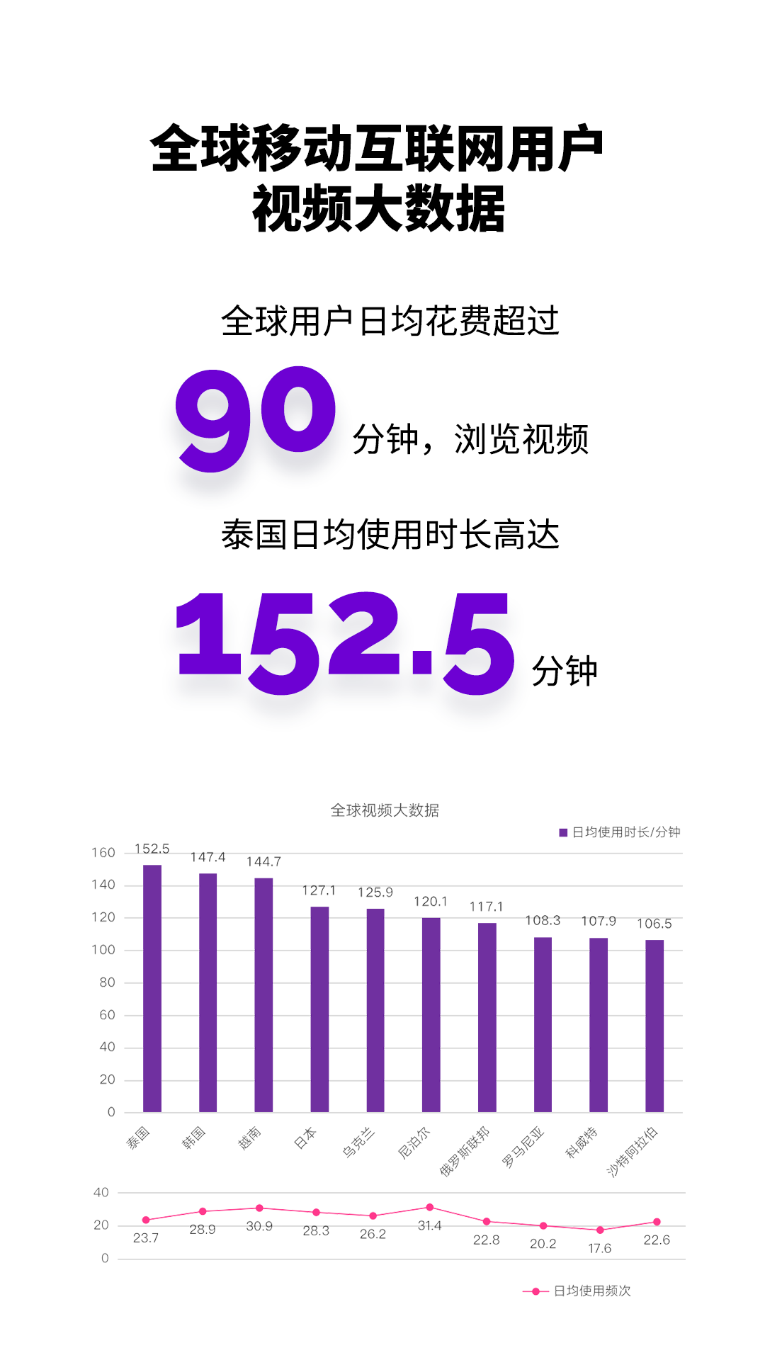 全球用户平均每天使用智能手机5.4小时,发达国家和发展中国家没有明显差异。泰国用户成为最痴迷上网的民族,每日联网时长达到了6.66小时。