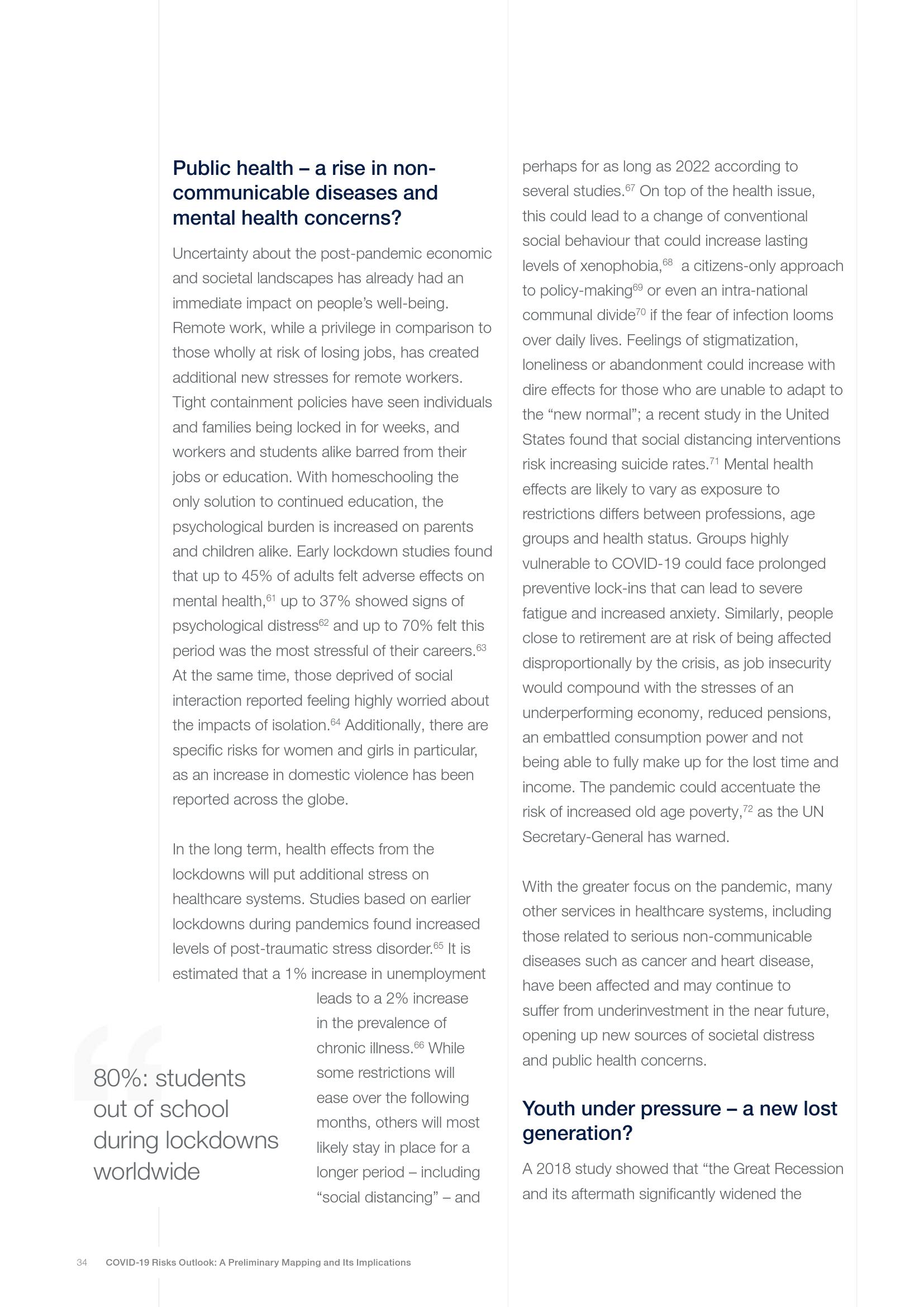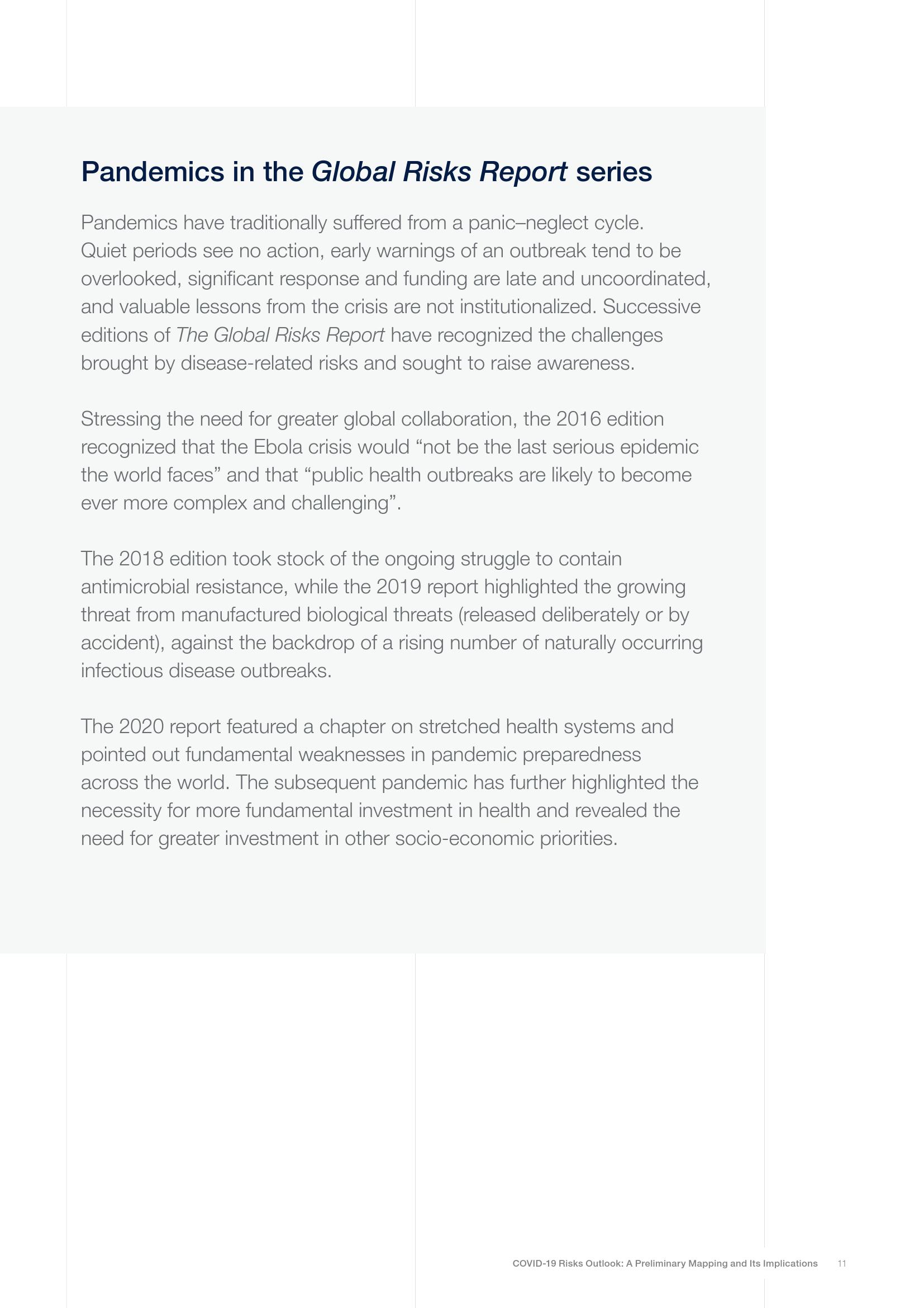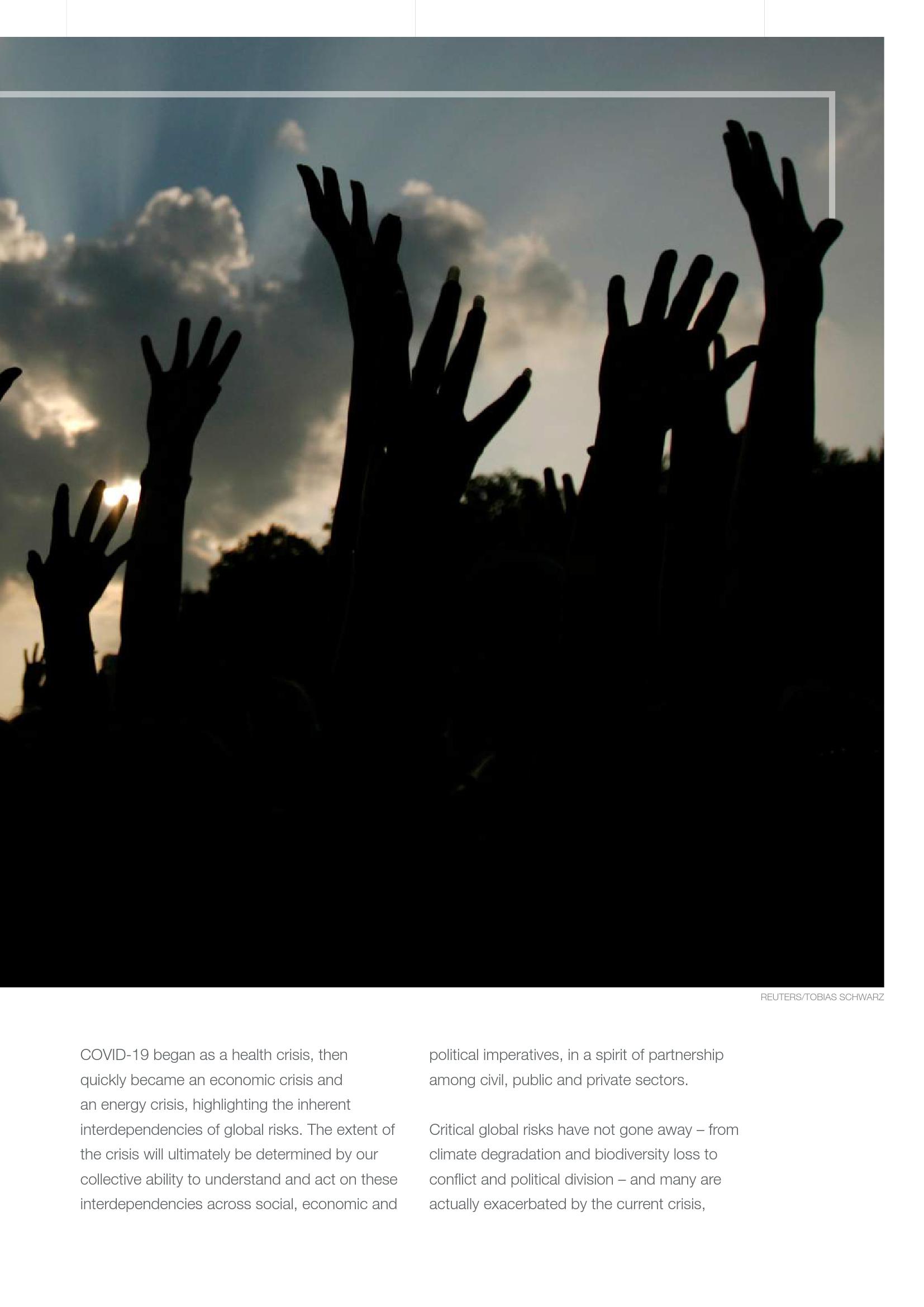报告考察了不同风险之间的相互关联,号召各国立即行动起来,防范出现系统性冲击,如气候危机、地缘政治震荡、贫富差距上升、民众心理健康问题、技术治理差距以及医疗系统压力持续上升。