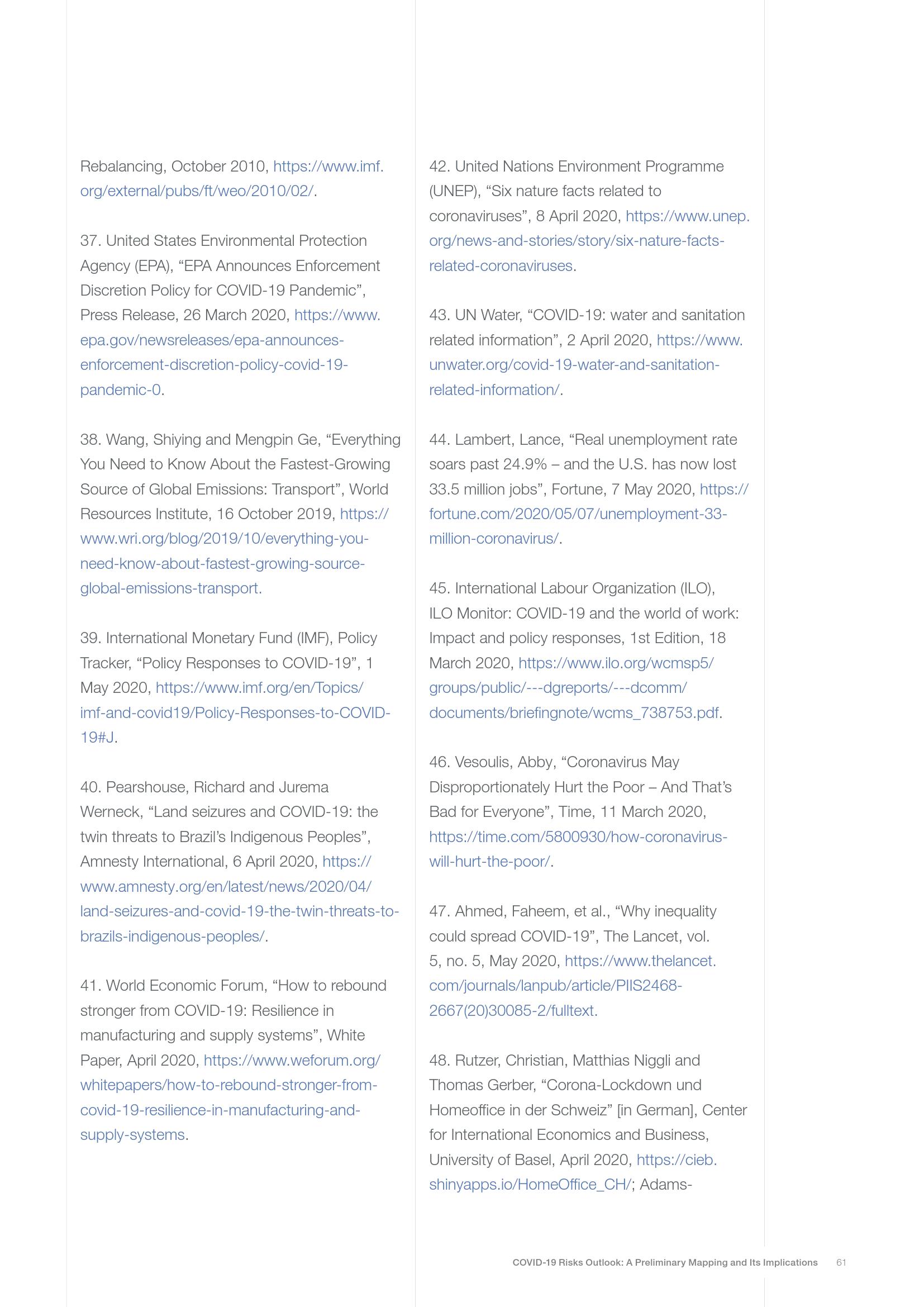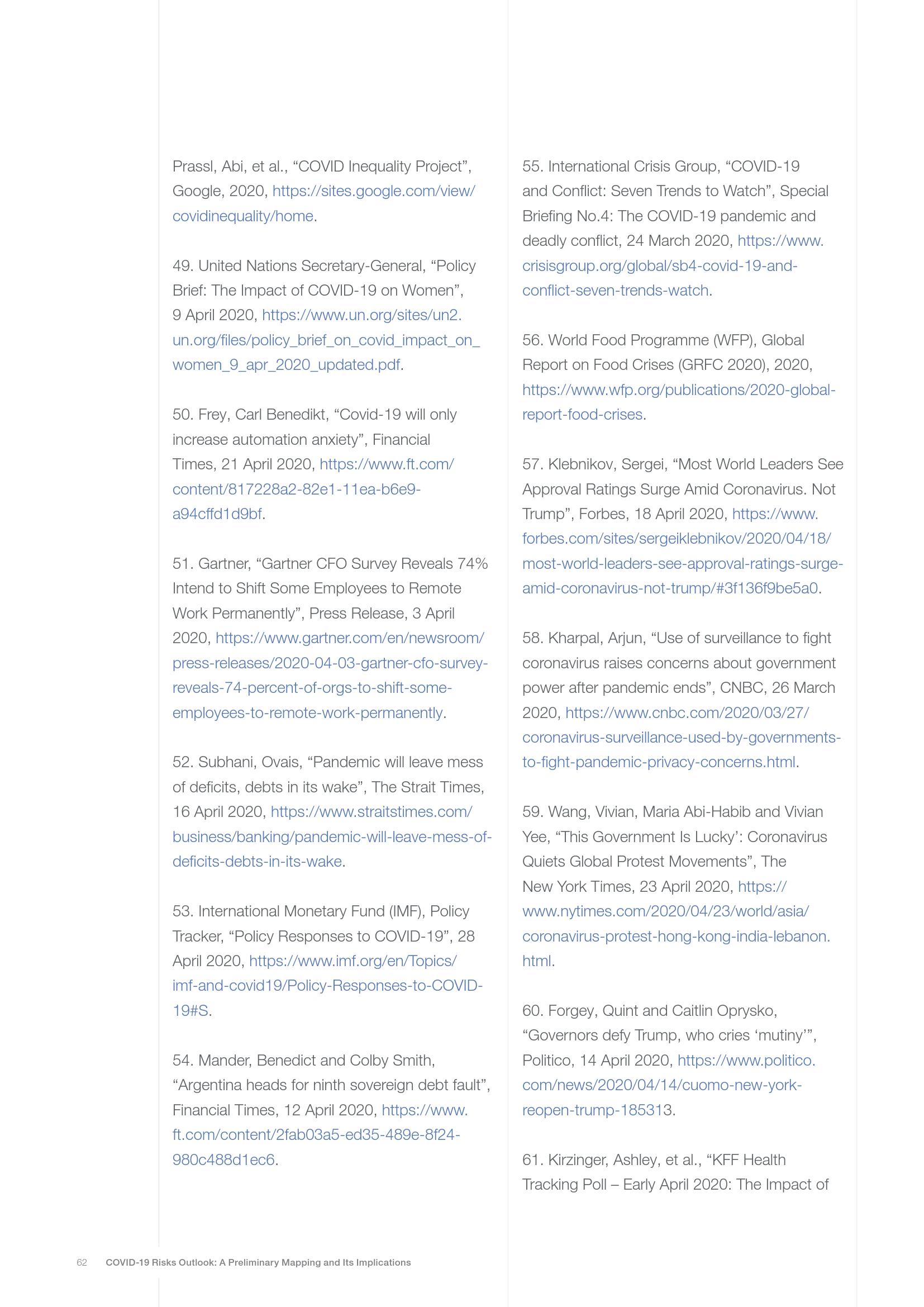 报告指出,各国领导人、企业和政策制定者必须携手控制疫情影响,否则经济衰退与社会不满情绪将在未来18个月更趋严重。报告同时呼吁在经济活动重启之际,各方应把握机会,加强社会平等和可持续发展,开创繁荣的新时代。