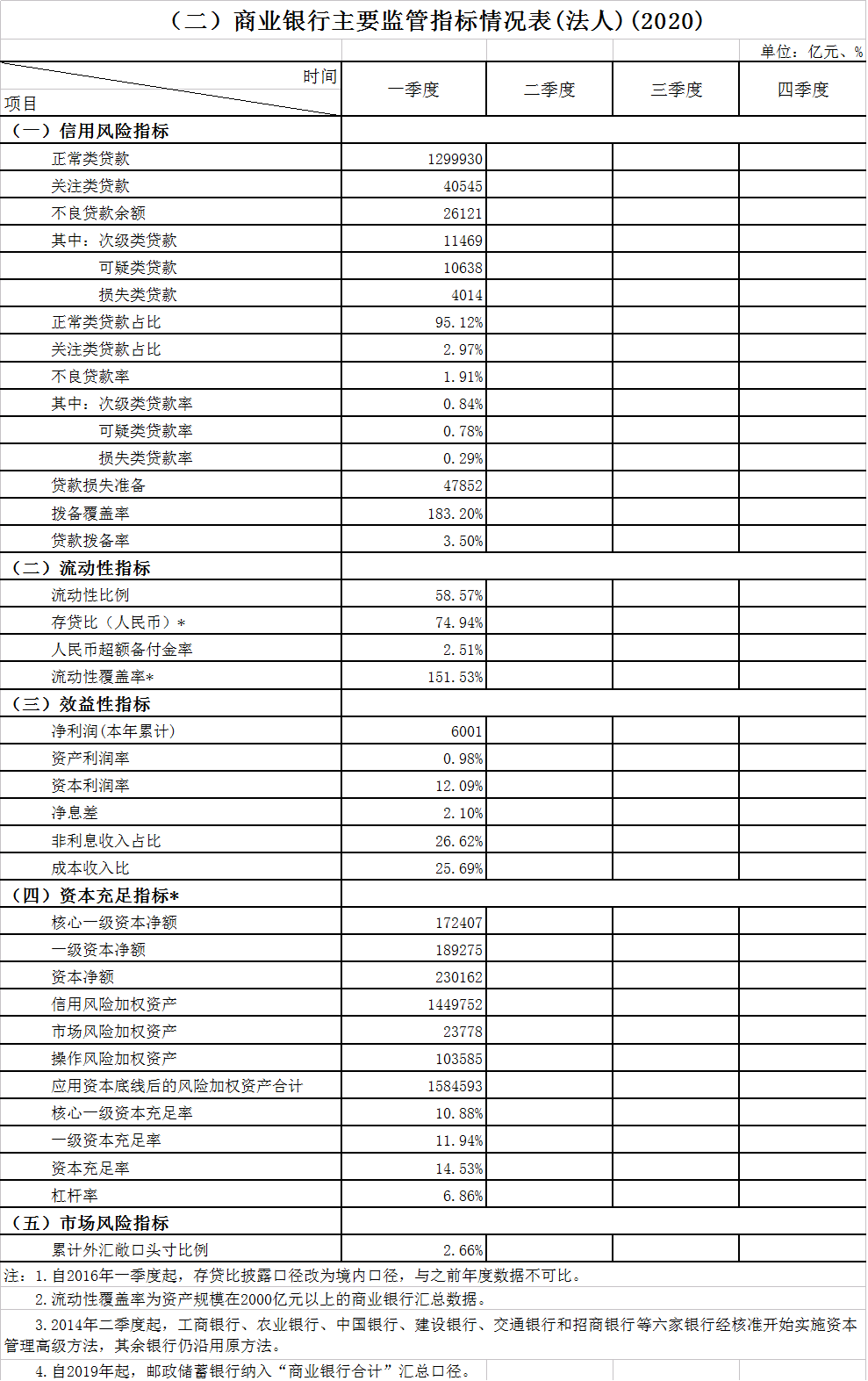 银保监会:2020年一季度银行业保险业主要监管指标数据情况