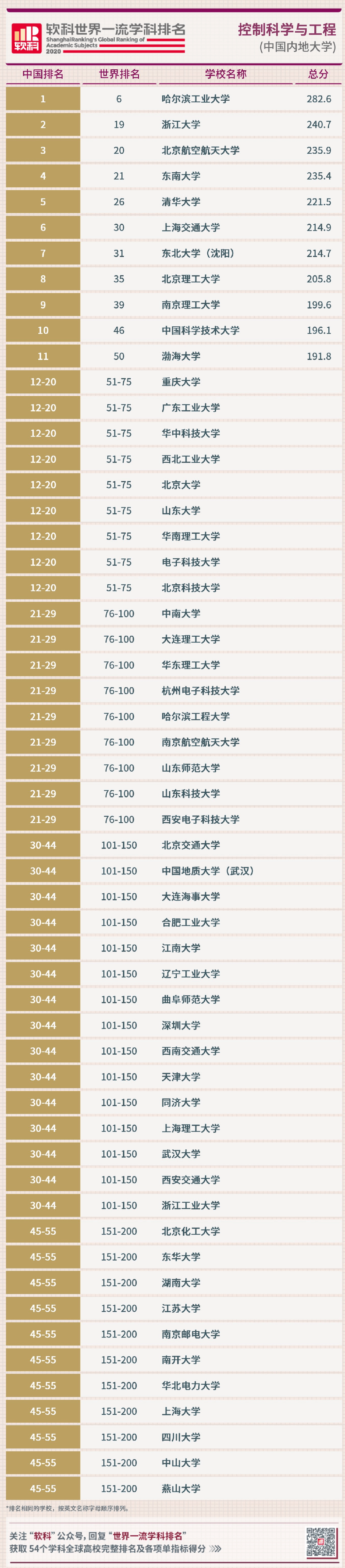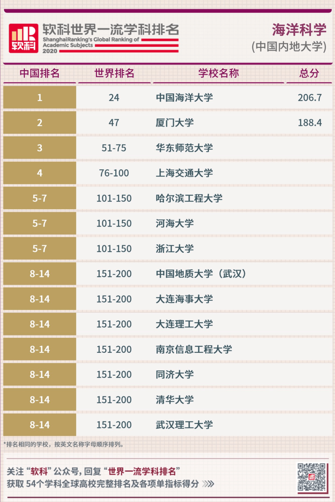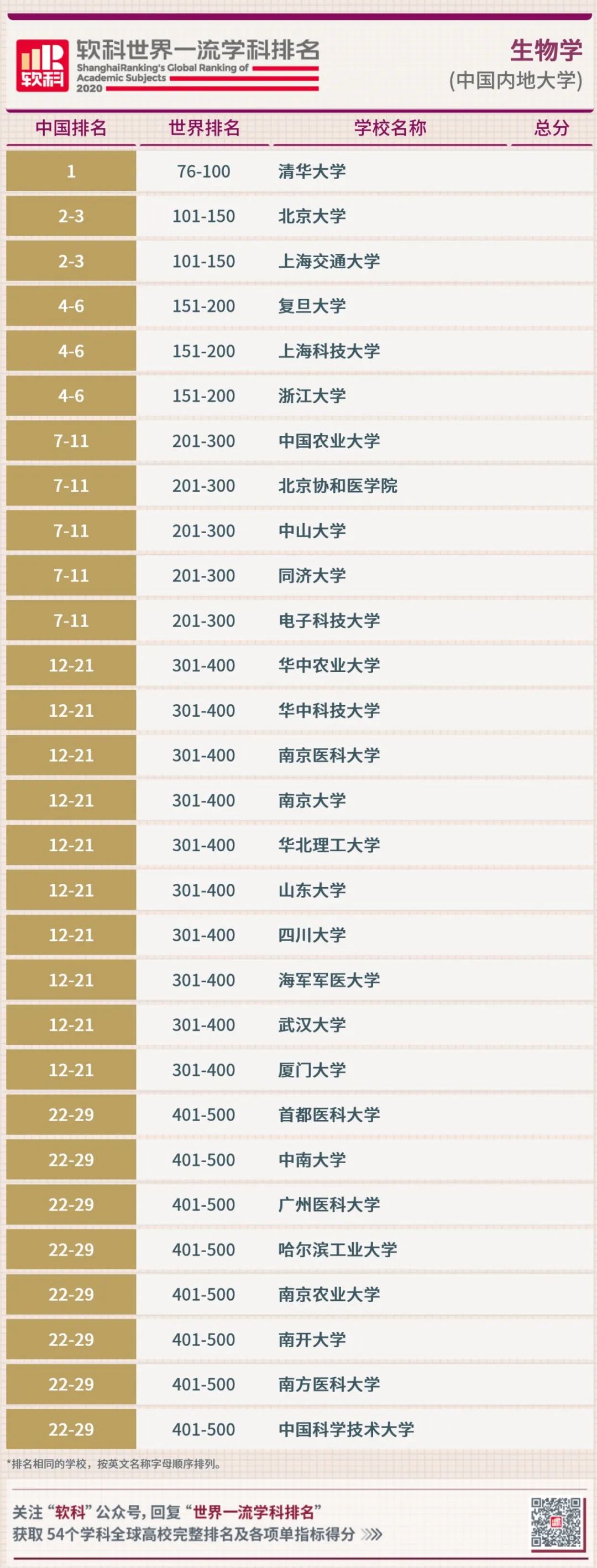 (2020年6月29日)软科今日正式发布2020“软科世界一流学科排名”(ShanghaiRanking’s Global Ranking of Academic Subjects)。2020年排名覆盖54个学科,涉及理学、工学、生命科学、医学和社会科学五大领域。