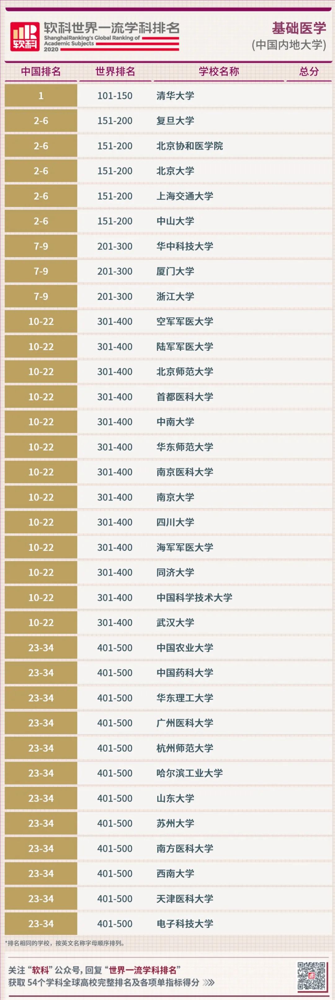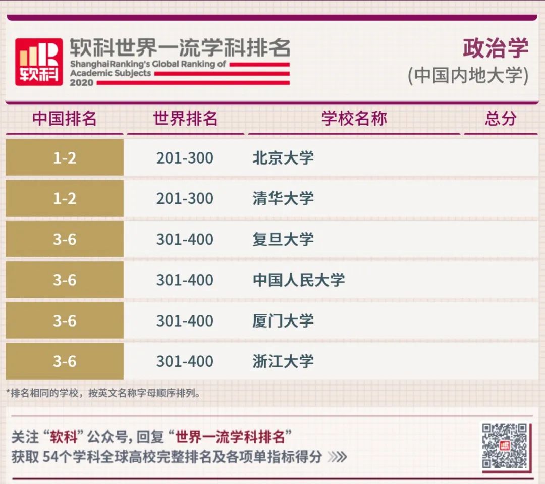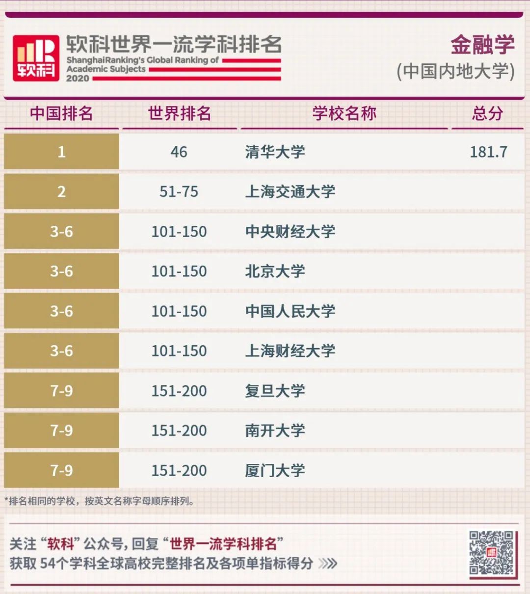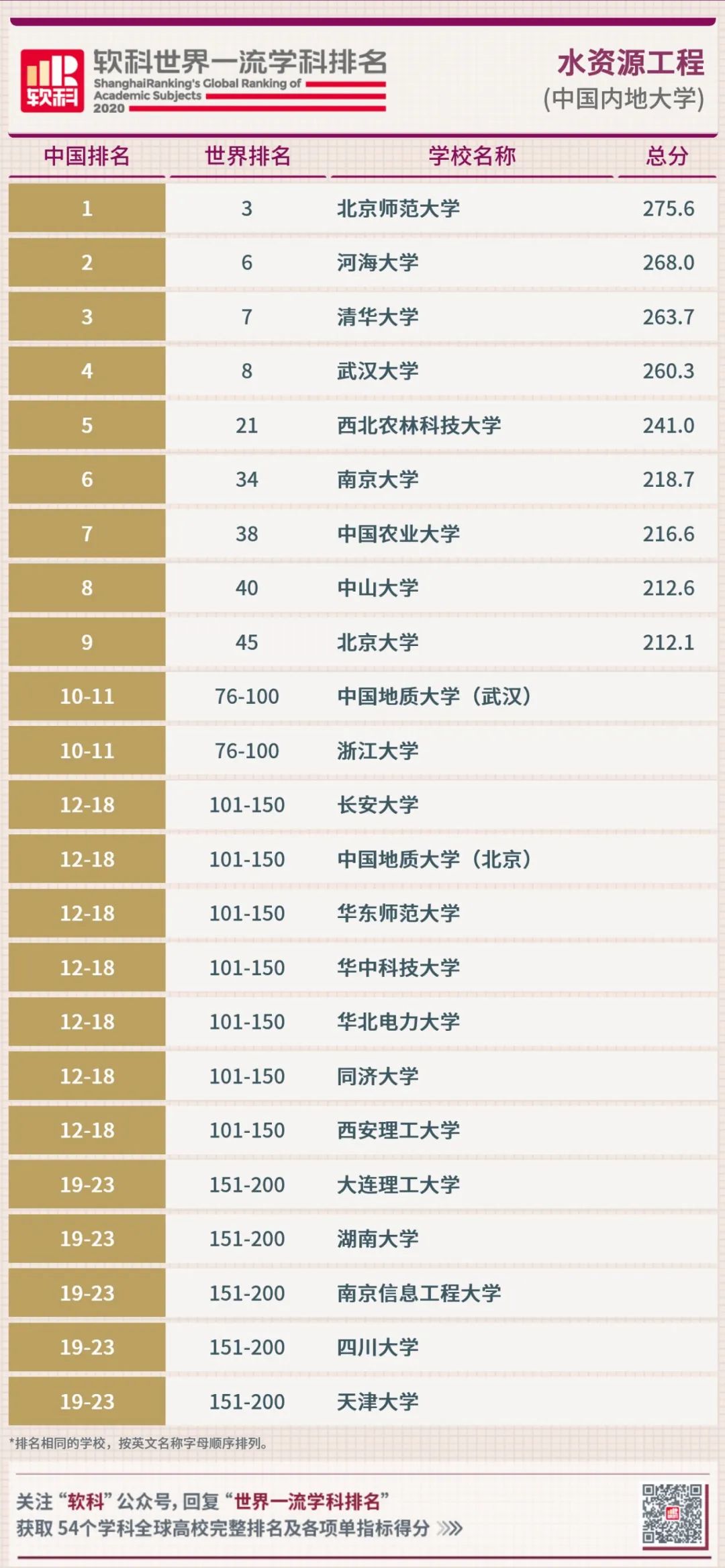 (2020年6月29日)软科今日正式发布2020“软科世界一流学科排名”(ShanghaiRanking’s Global Ranking of Academic Subjects)。2020年排名覆盖54个学科,涉及理学、工学、生命科学、医学和社会科学五大领域。