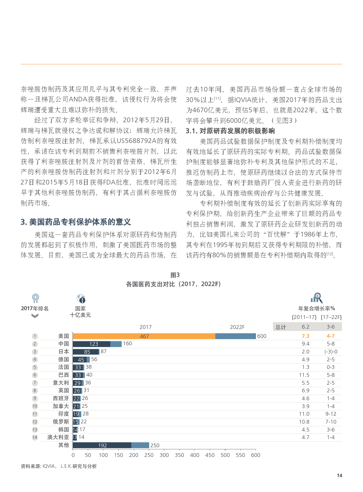 基于以上背景,中国医药创新促进会与L.E.K.联合编写了《保护创新、促进仿制——对中国建立药品专利保护体系的政策建议》报告。报告从全球药品专利保护现状及全球药品知识产权保护体系出发,分别剖析了美国、日本、欧盟的药品专利保护体系及亮点制度,并对我国当前药品市场的现状及药品专利保护发展历程进行了回顾与分析,最后,通过对比中国、美国、日本、欧盟的主要药品专利机制,以期为我国未来药品专利保护体系的建立提出政策性参考建议。